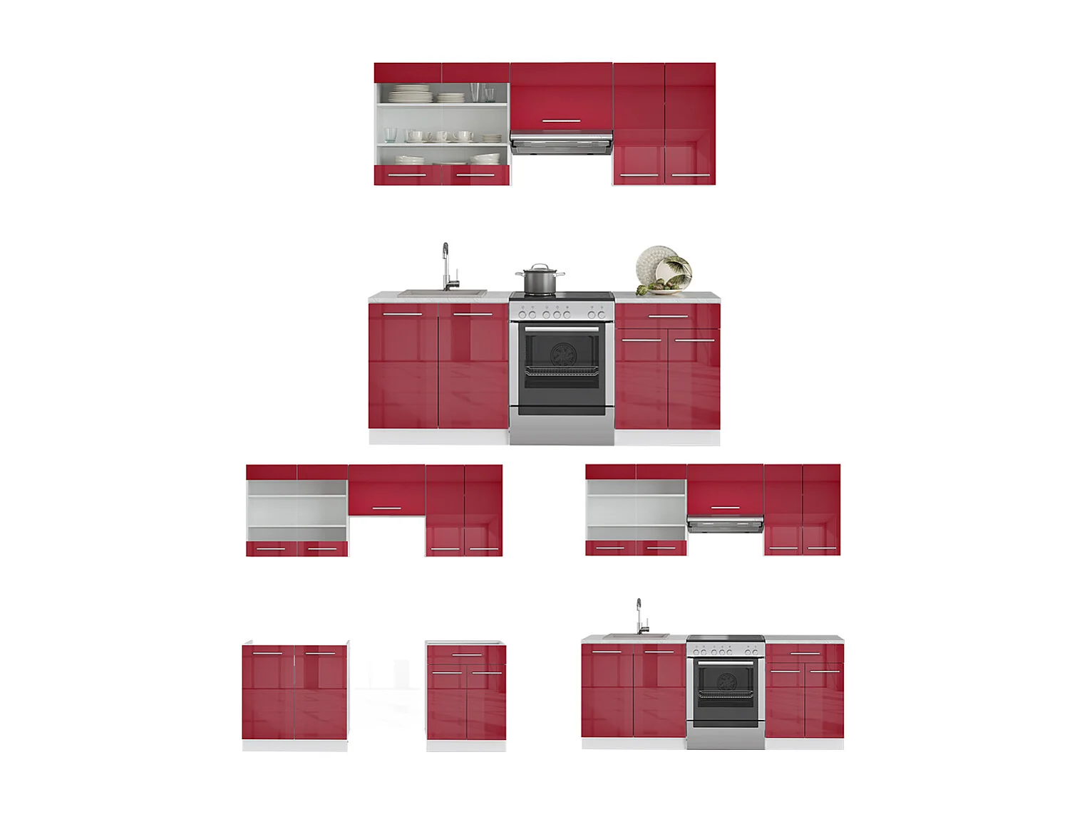 Mueble de cocina rojo burdeos alto brillo 200x46x81.6 fame-line