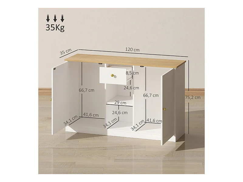 Mueble de cocina salón 1 cajón 2 puertas 2 estantes 120x35x75 cm blanco