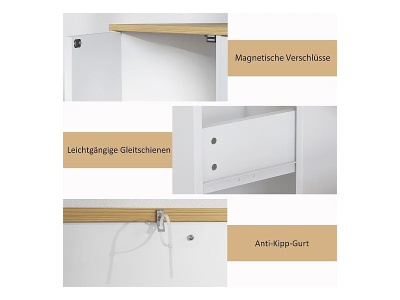 Aparador de almacenaje de madera blanca natural 90x35x99cm con estantes regulables para recibidor salón
