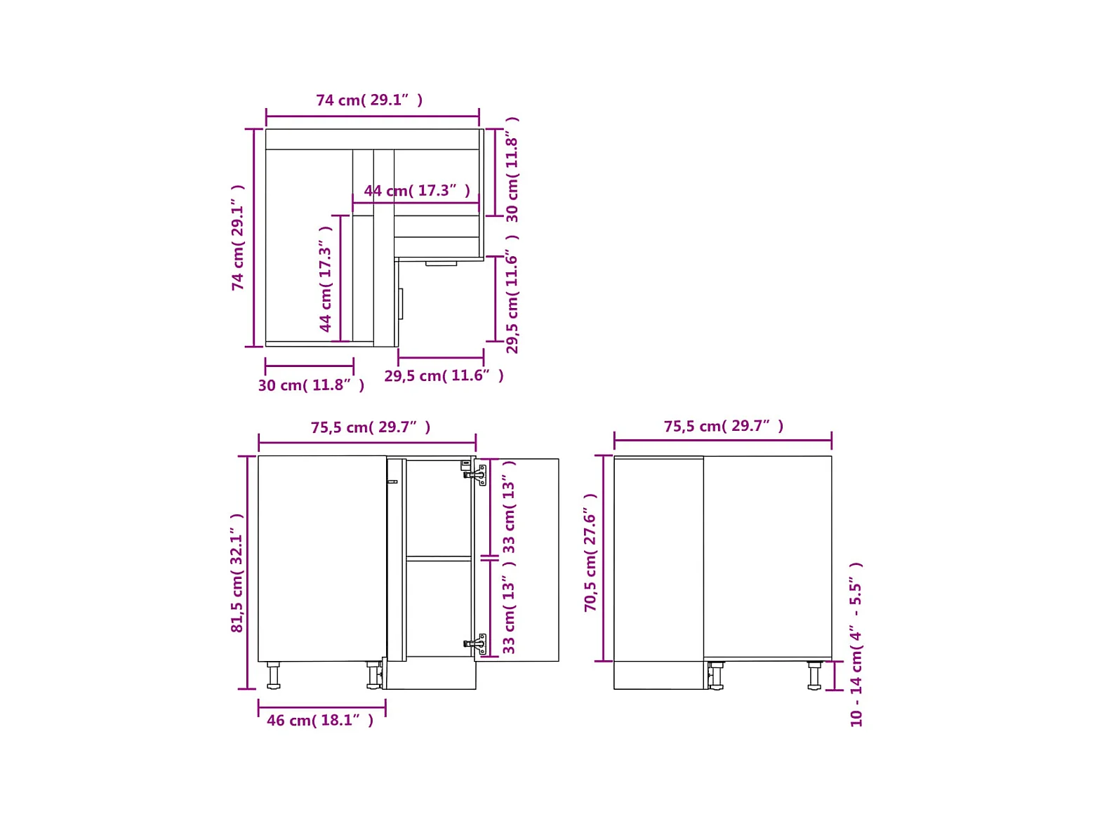 Mueble esquinero suelo gris hormigón 75,5x75,5x81,5 cm madera