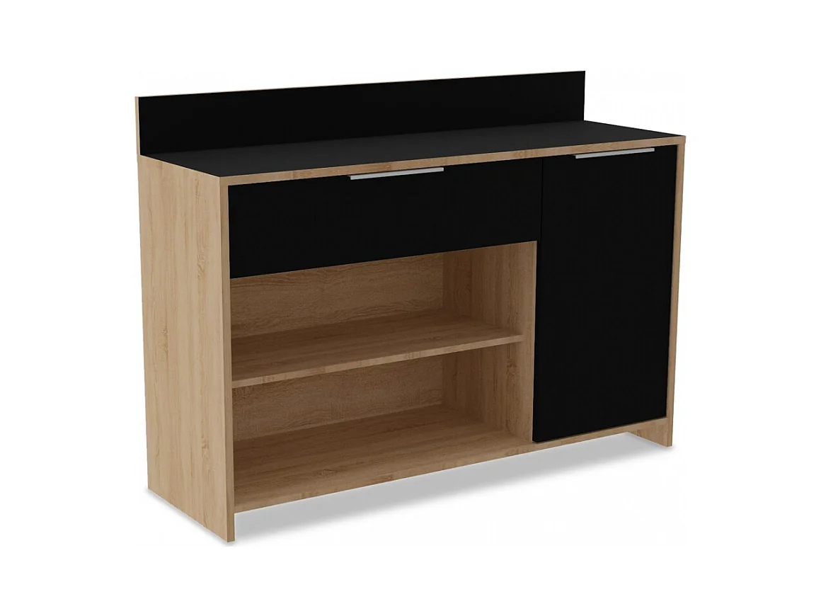 Armario multifunción Dlarin, Mueble auxiliar de cocina, Aparador con 3 puertas y 1 cajón con baldas, armario abierto, 108x40h126 cm, Blanco y Roble