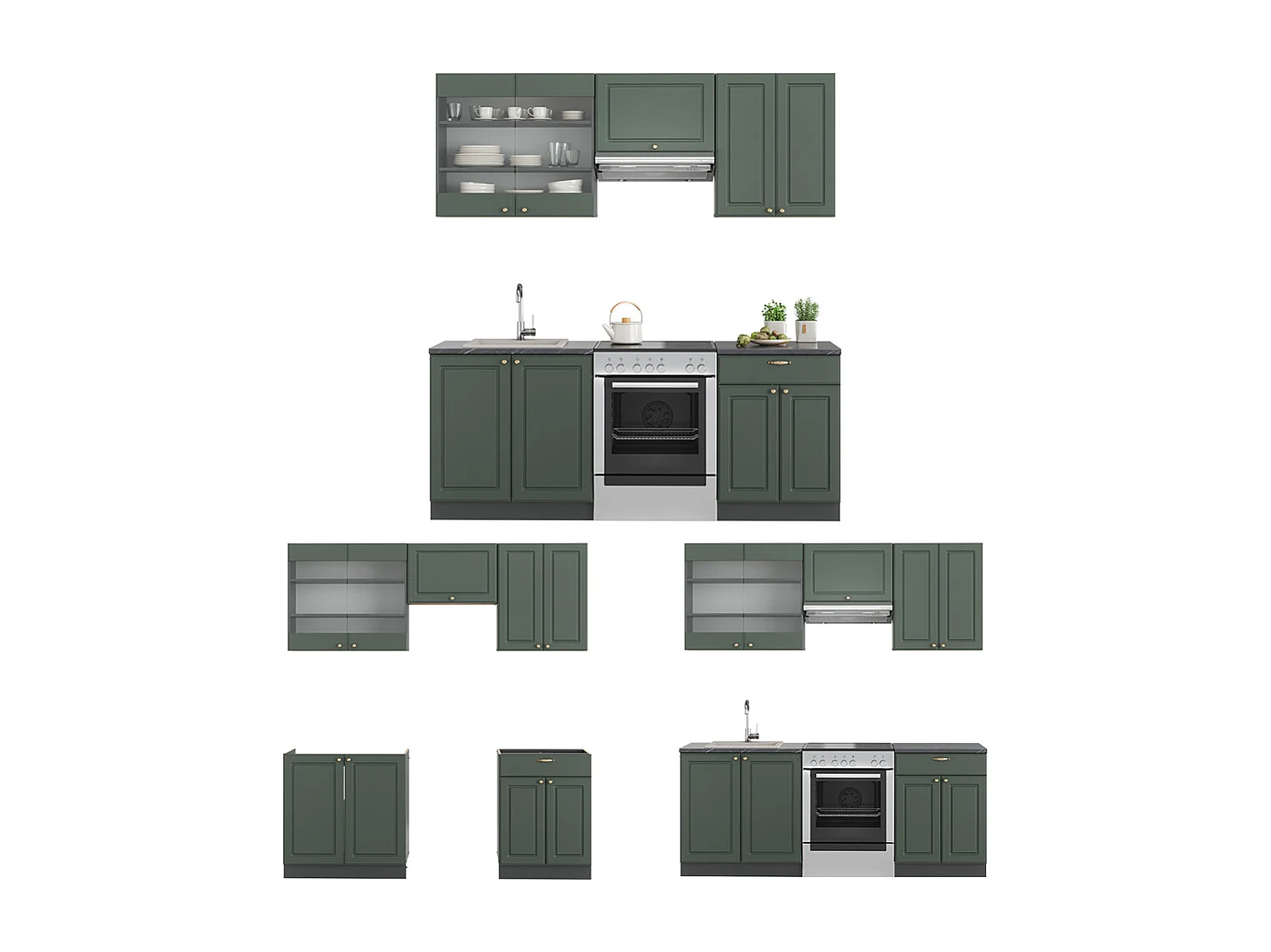 Mueble de cocina verde-dorado casa de campo/antracita 235x60x81.6 fame-line