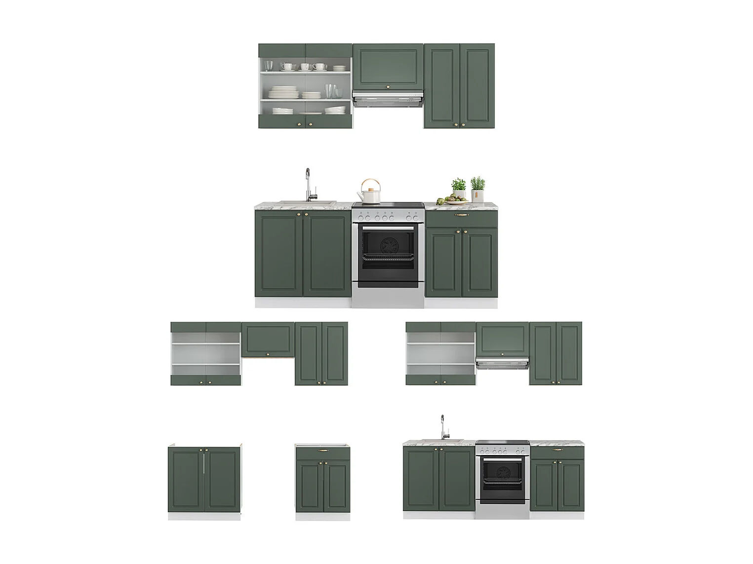 Mueble de cocina verde-dorado casa de campo/blanco 200x60x81.6 fame-line