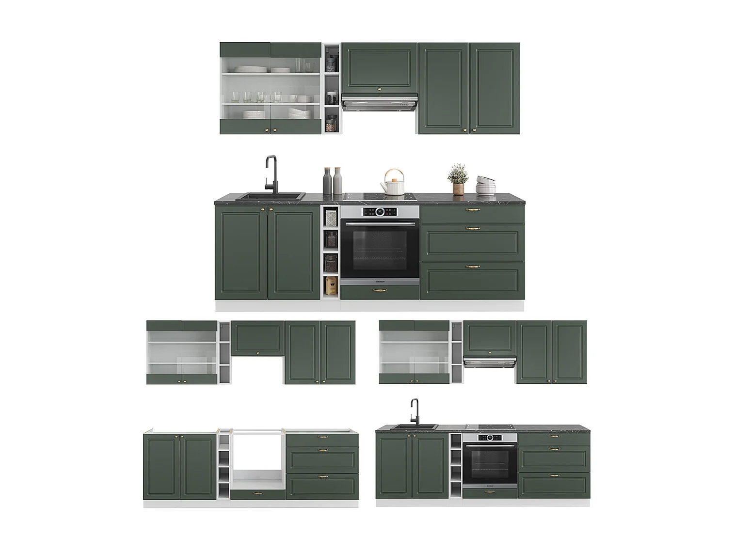 Mueble de cocina verde-dorado casa de campo/blanco 235x46x81.6 fame-line