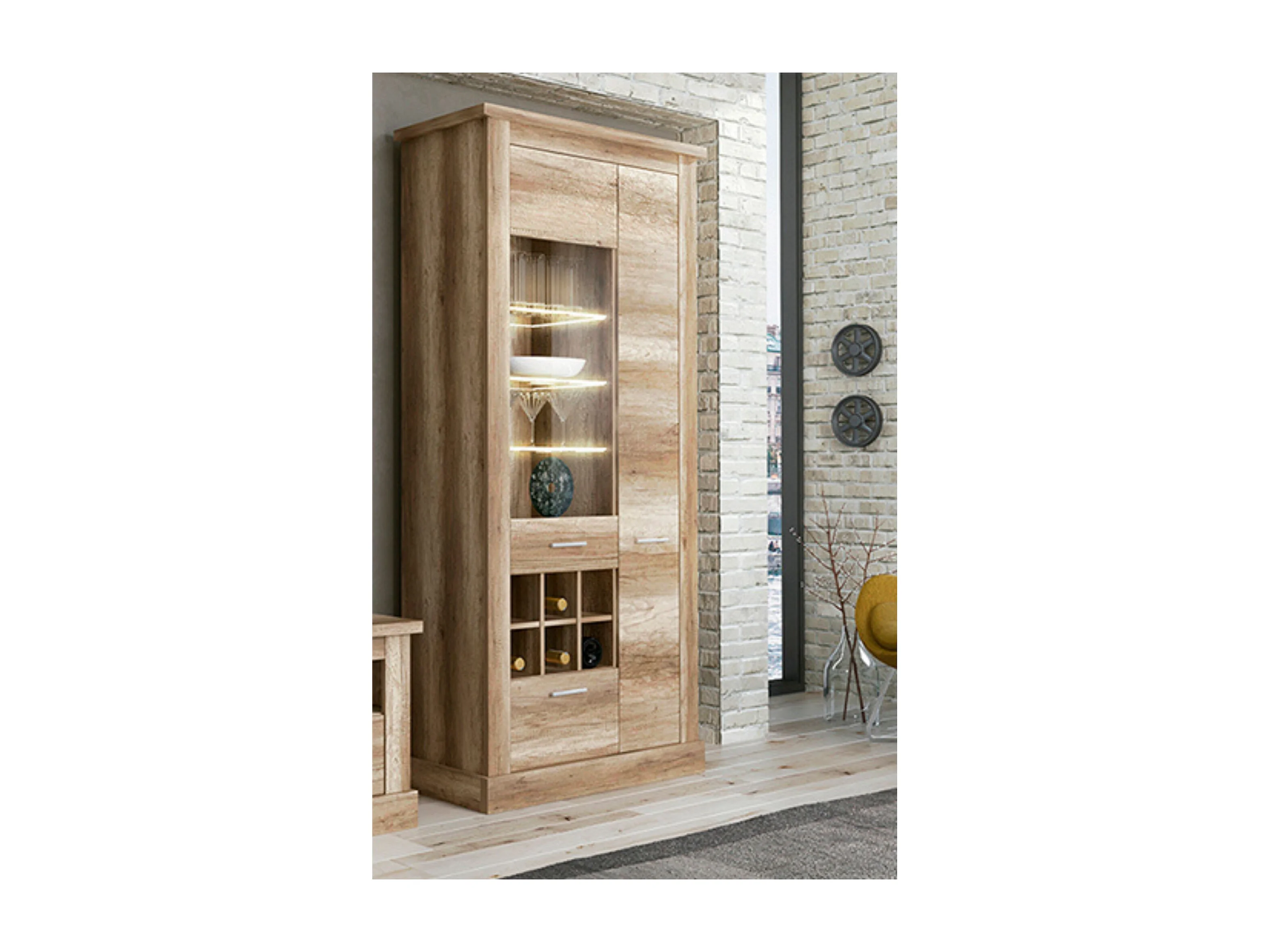 Mueble de Comedor, Mueble Televisión, Acabado en Color Cañón, Medidas: 297 cm (Ancho) x 201,6 cm (Alto) x 41,8 cm (Fondo)