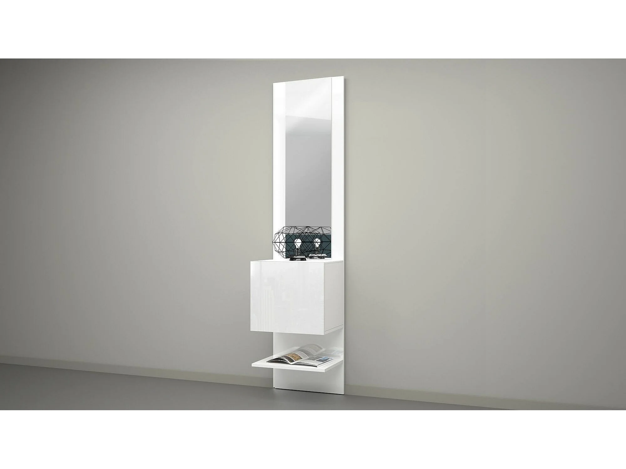 Mueble de entrada Dcuadrad, Mueble multifuncional con espejo, Zapatero con 1 puerta, 45x35h190 cm, Blanco