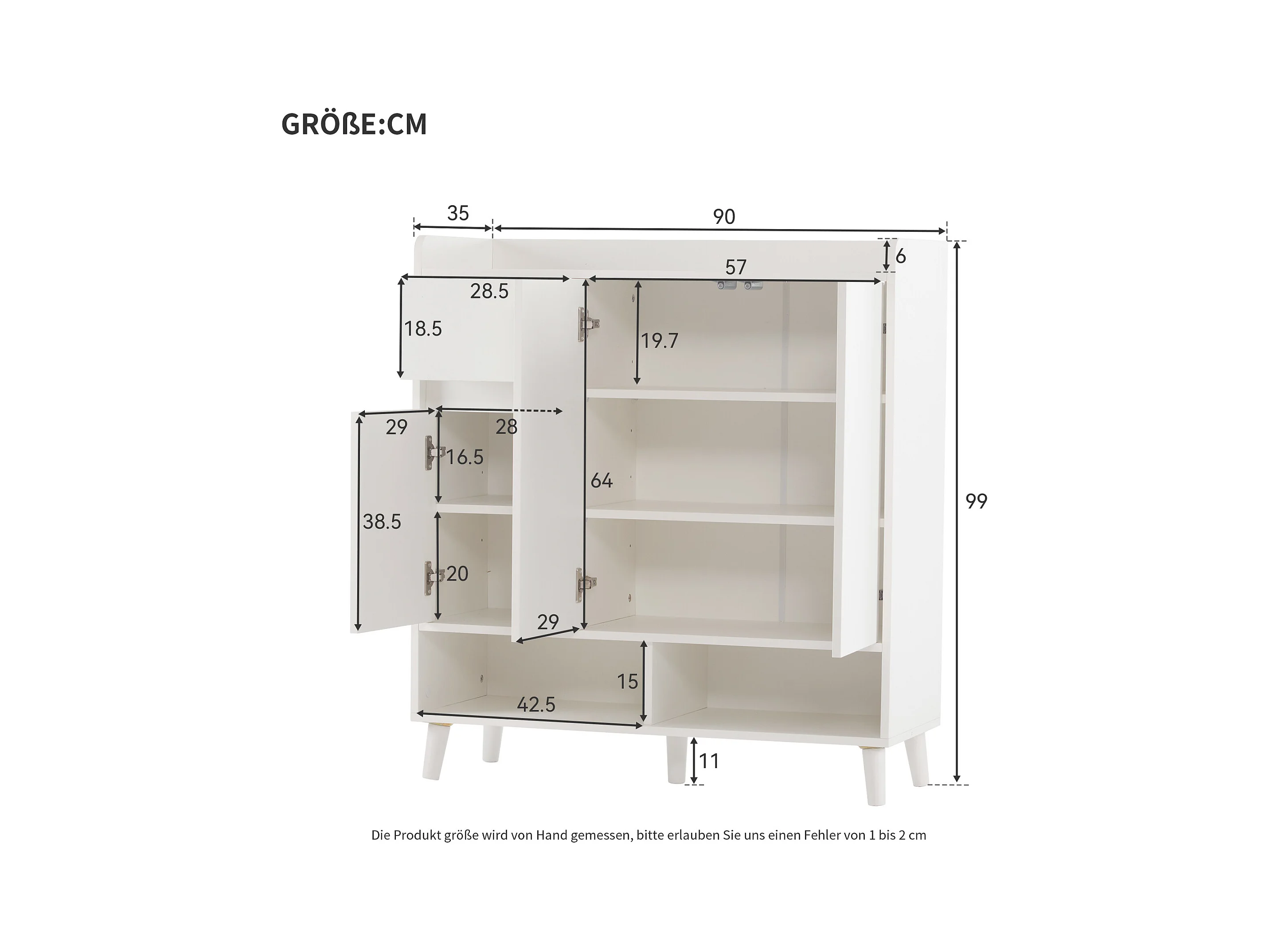 Aparador de almacenaje de madera blanca natural 90x35x99cm con estantes regulables para recibidor salón