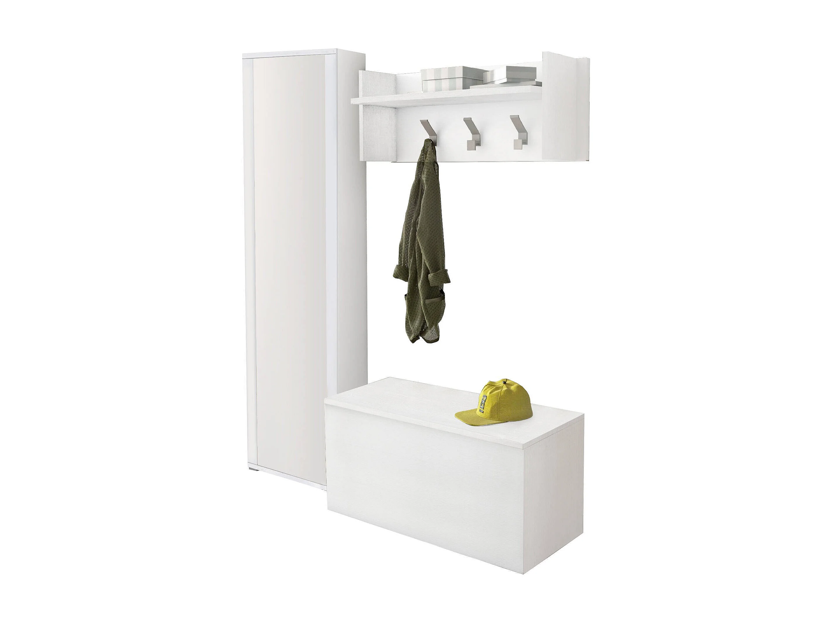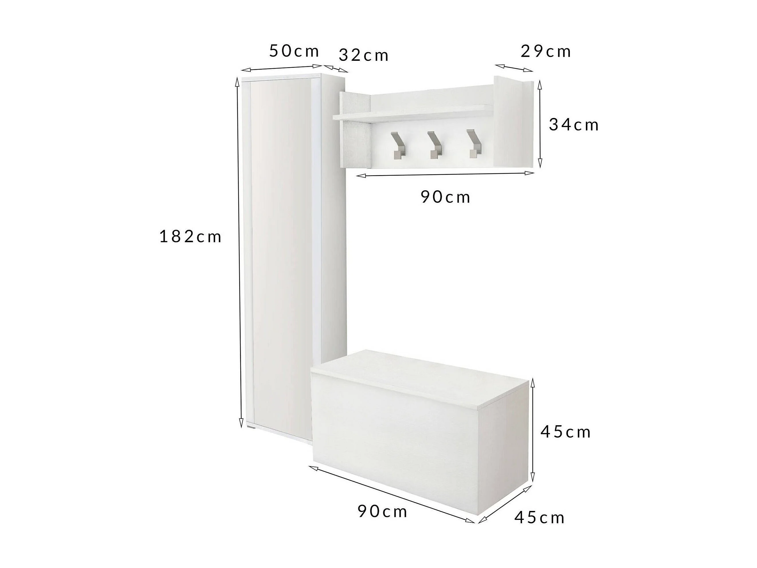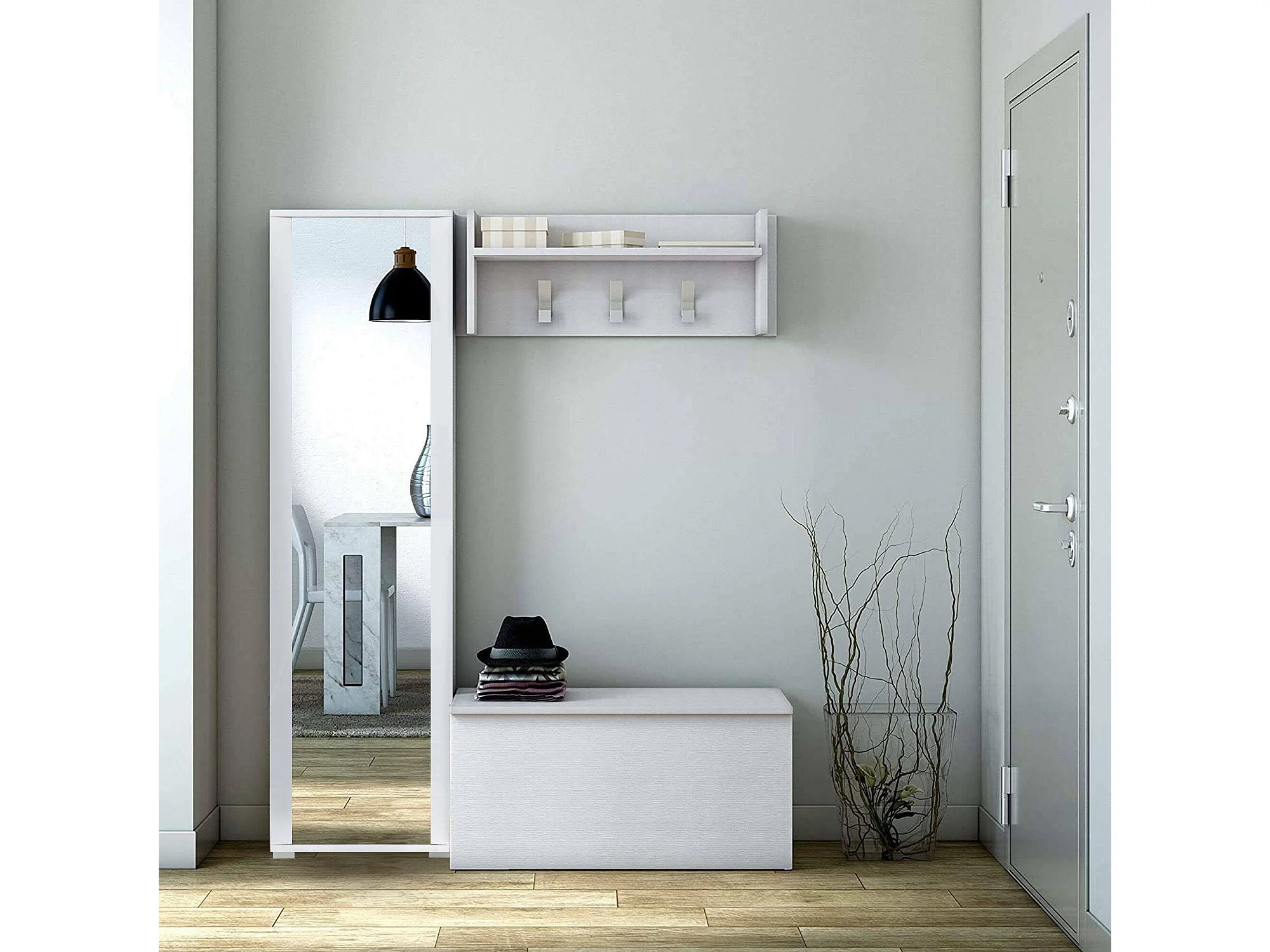 Mueble de entrada Djohnse, Entrada moderna con perchero, Mueble con zapatero, Armario con espejo, Cm 50x32h182, Blanco