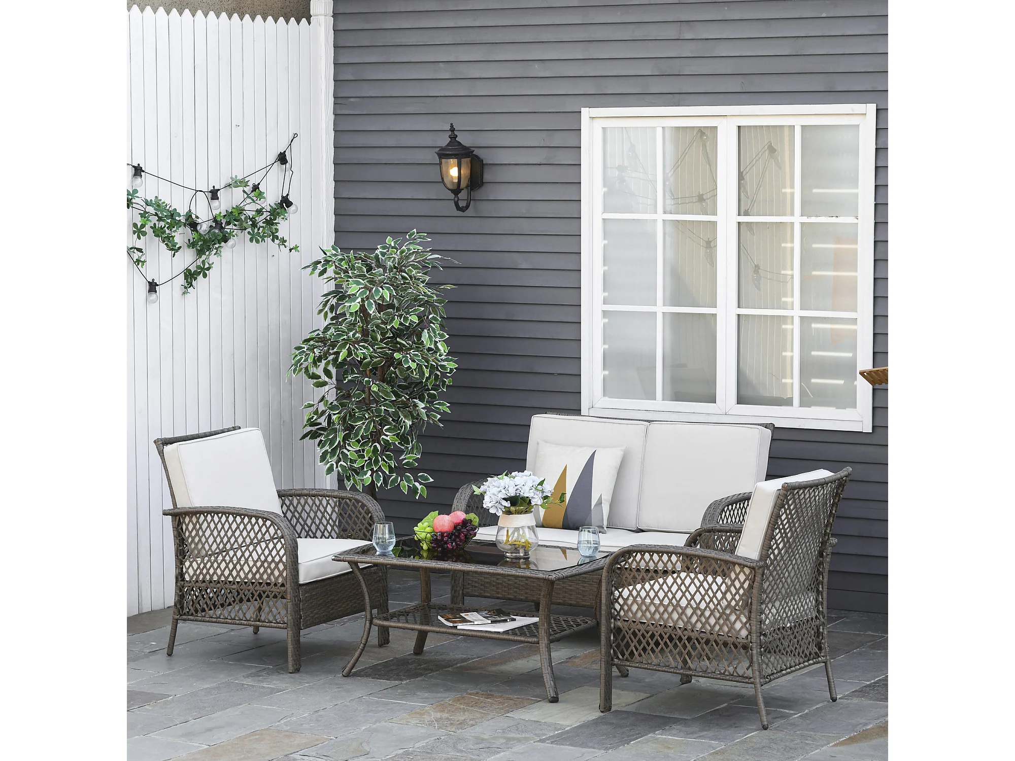Conjunto de muebles ratán para jardín gris 60x58.5x89.5 cm Outsunny