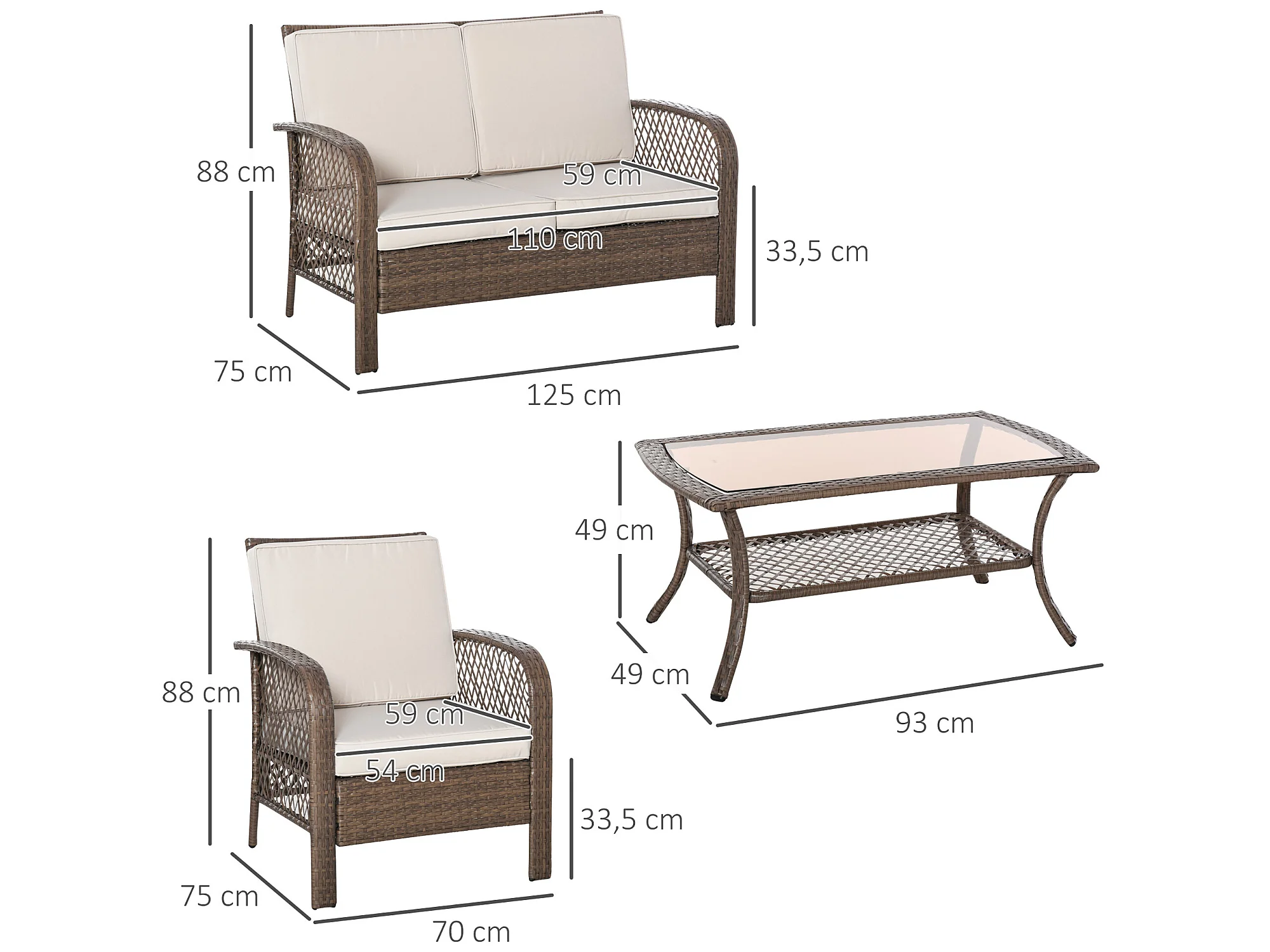 Muebles de jardín de ratán marrón 125x75x88 cm Outsunny