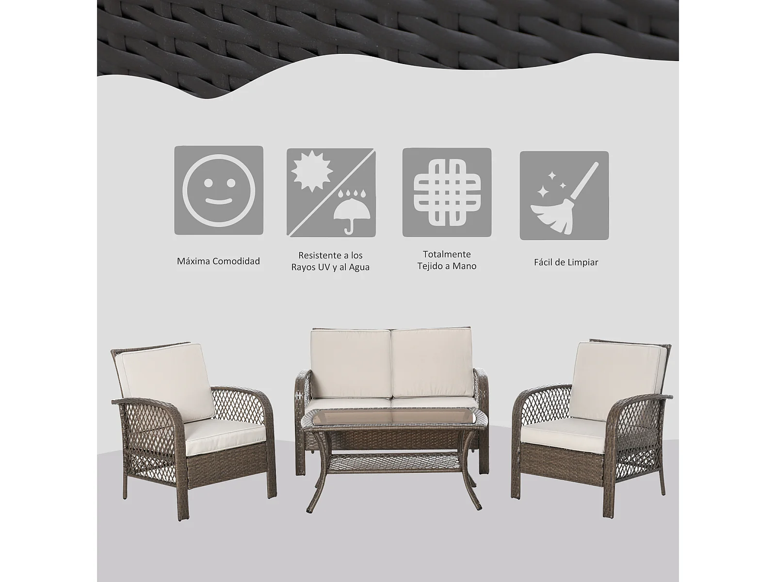 Set de sofás de jardín 4 pzas y cojines ratán sintético marrón