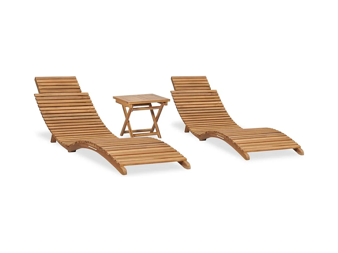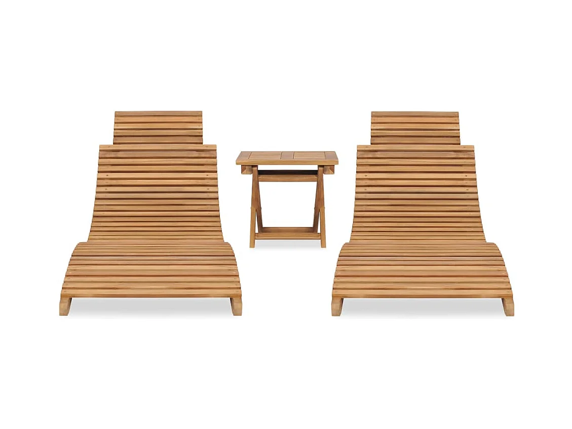 Tumbona tumbona para tomar el sol cama de jardín terraza muebles de exterior con mesa de té 3 piezas de madera maciza de acacia 02_0012693