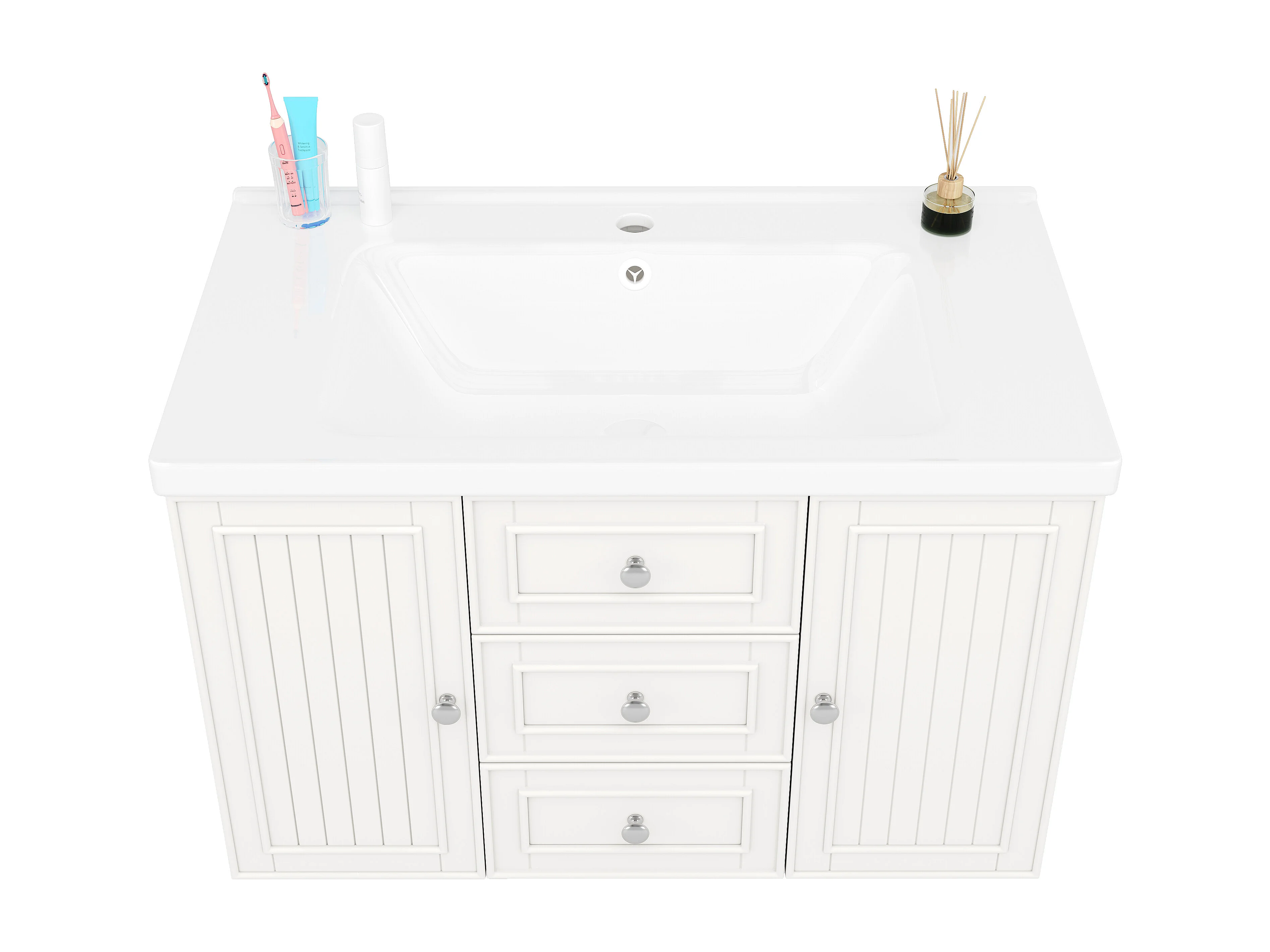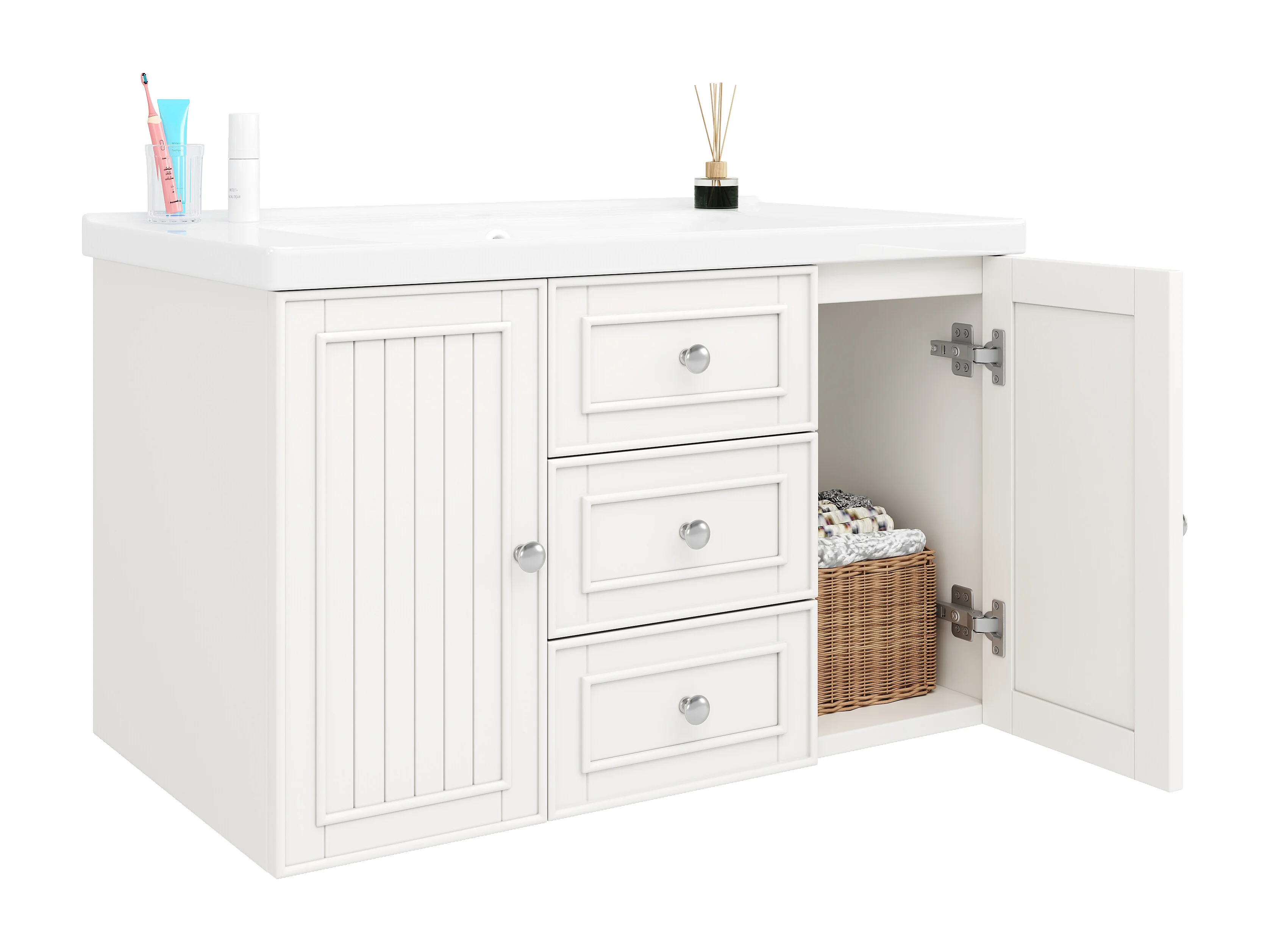 Mueble de lavabo con 3 cajones, blanco, MDF, con lavabo de cerámica (78,5x46x46,8 cm)