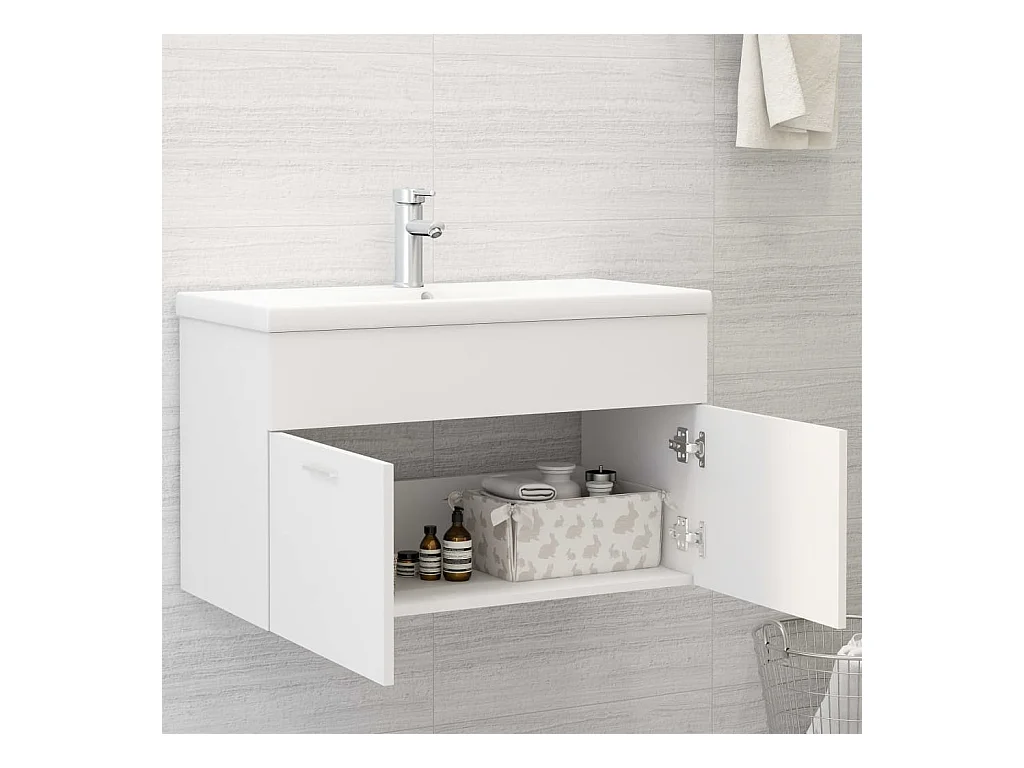 Mueble de lavabo con fregadero integrado Madera de ingeniería blanca