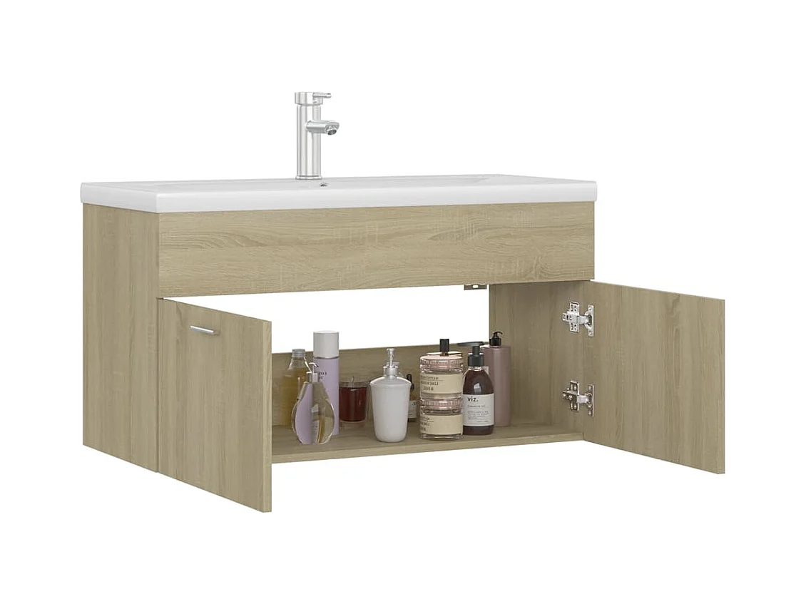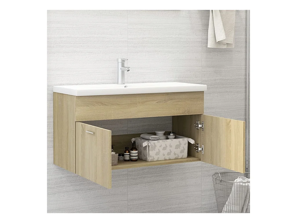 Mueble de lavabo con fregadero integrado Roble Sonoma Aglomerado