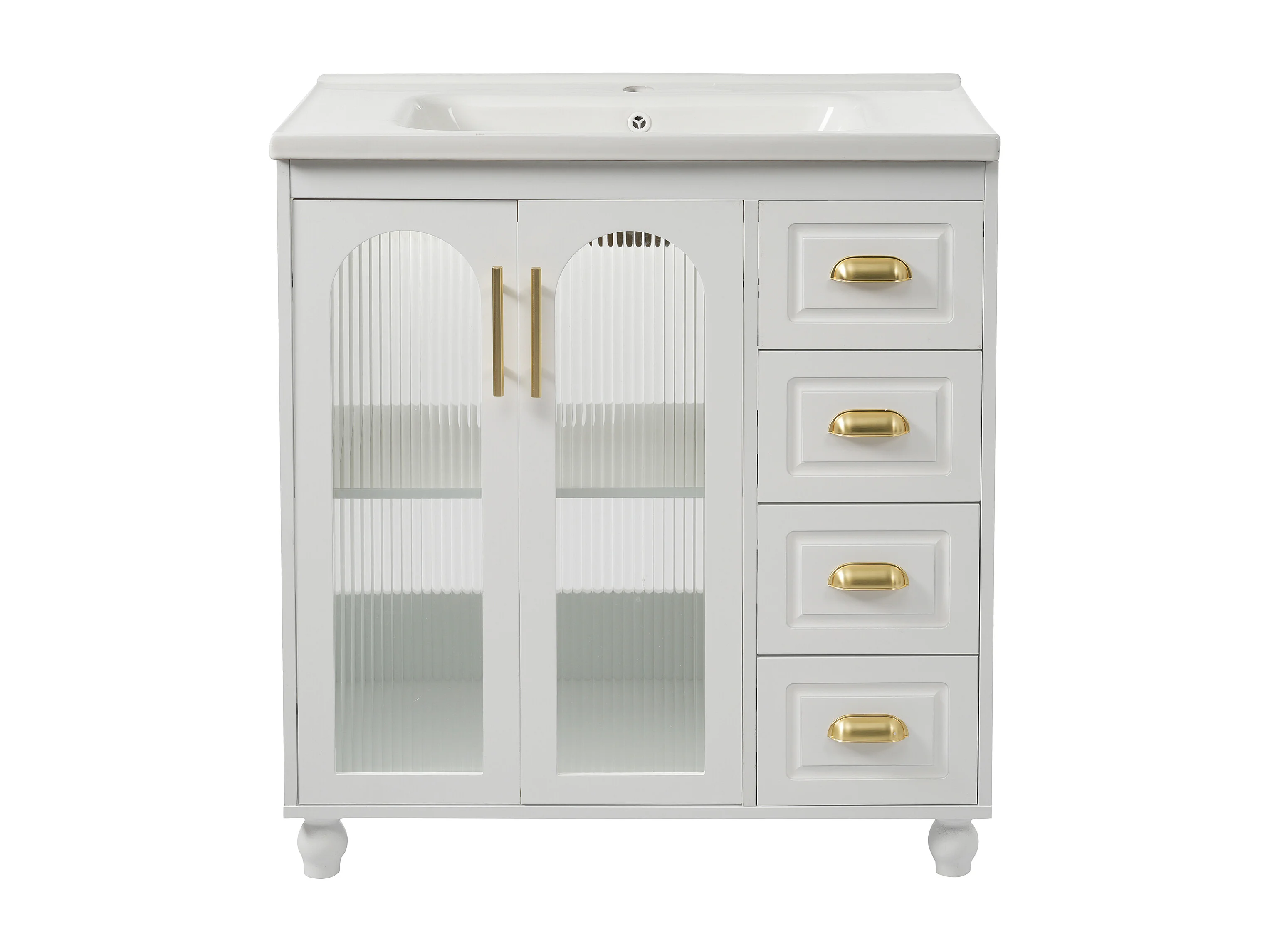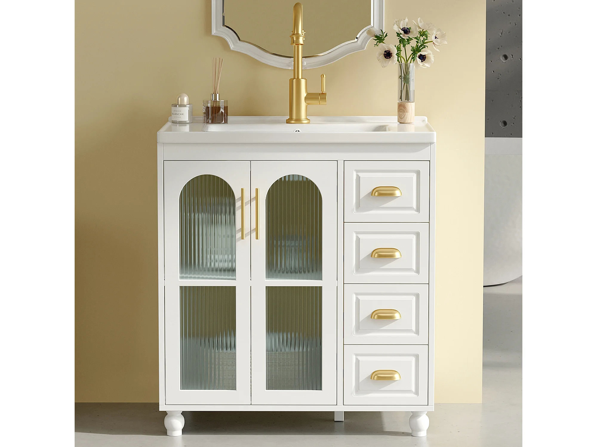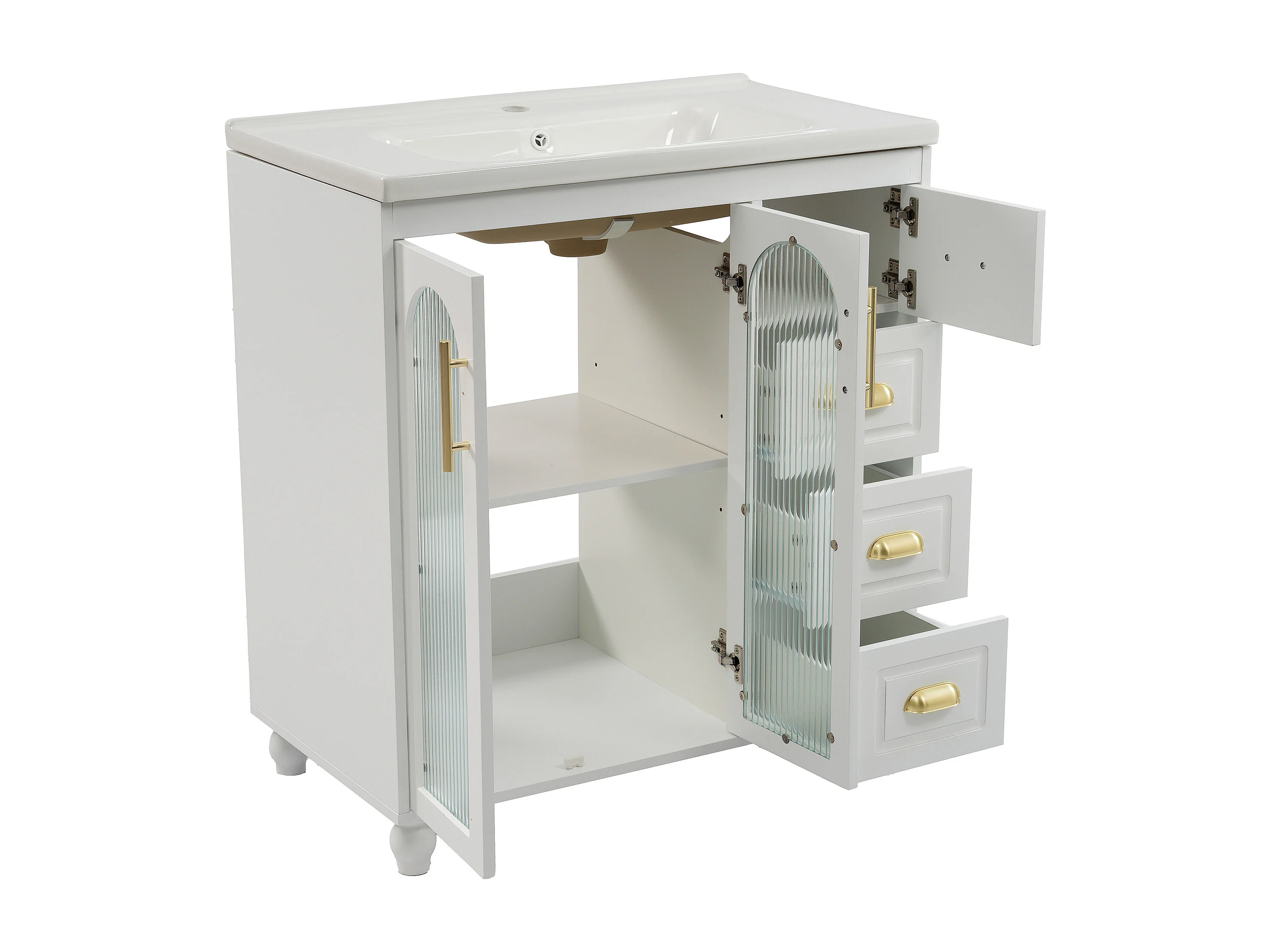 Mueble de lavabo con lavabo encastrado, 3 puertas y 3 cajones incluidos, 80x47x90cm