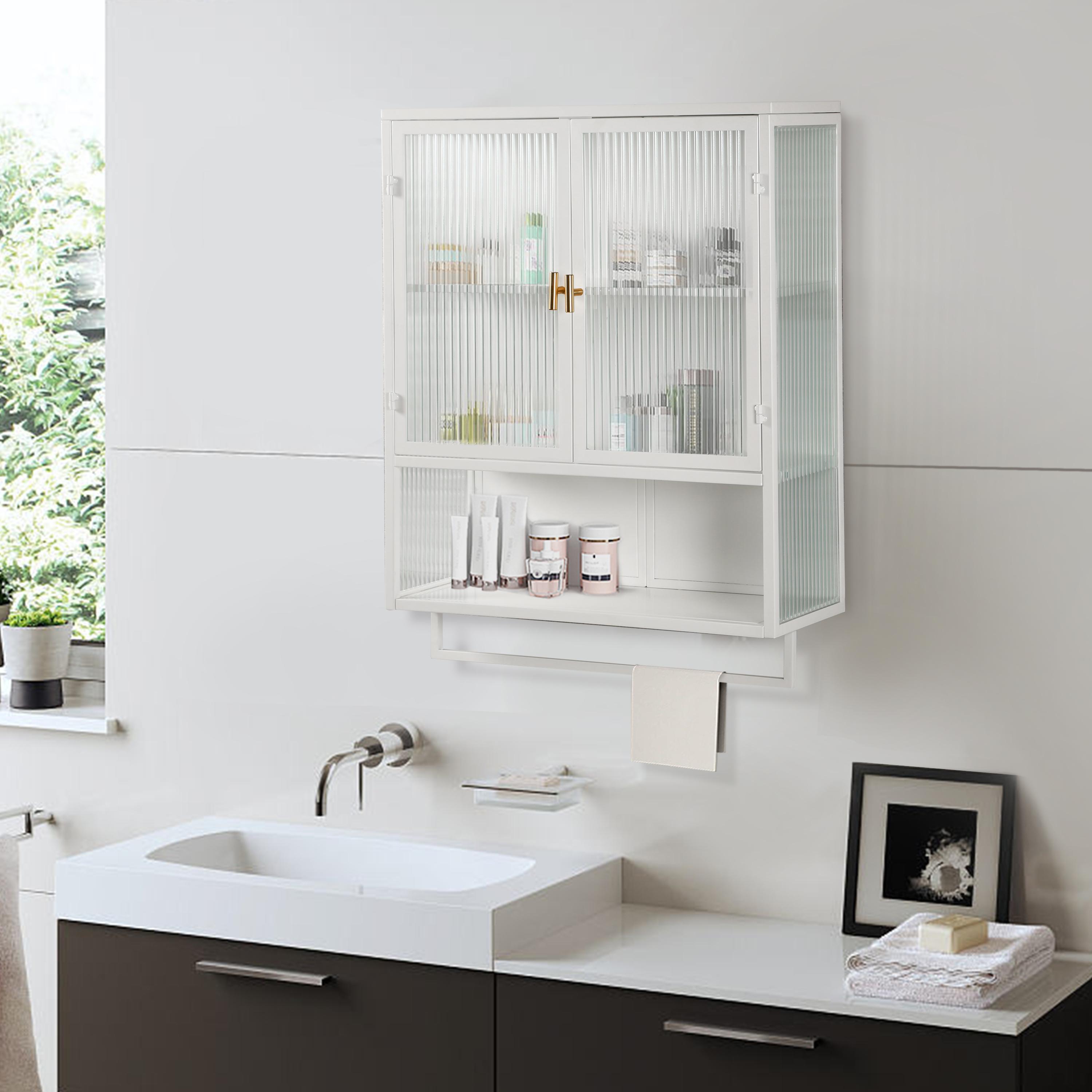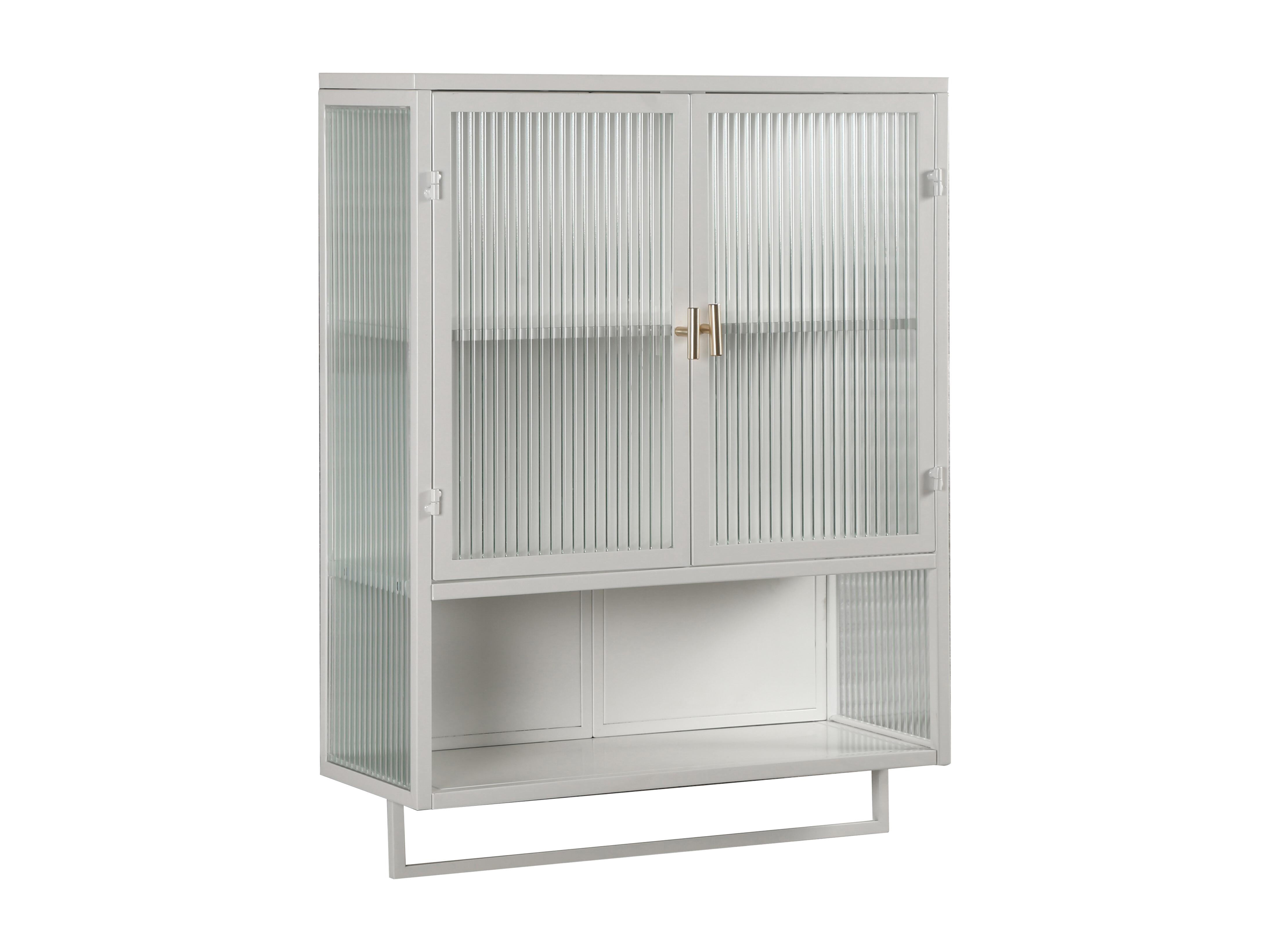 Dale un toque contemporáneo a tu hogar con este armario de pared de metal y vidrio templado, diseñado para maximizar el espacio y ofrecer un almacenamiento elegante. Con su robusta estructura de hierro y su diseño de vidrio acanalado semitransparente, este armario combina estética y funcionalidad. Ideal para baños modernos o interiores minimalistas, se monta en la pared para liberar espacio y mantener tus artículos esenciales a mano.