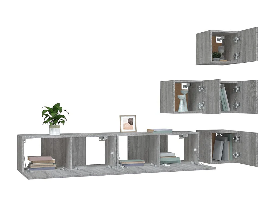 Set de muebles para TV | Gabinetes de TV | Muebles de salón 5 pzas madera contrachapada gris Sonoma