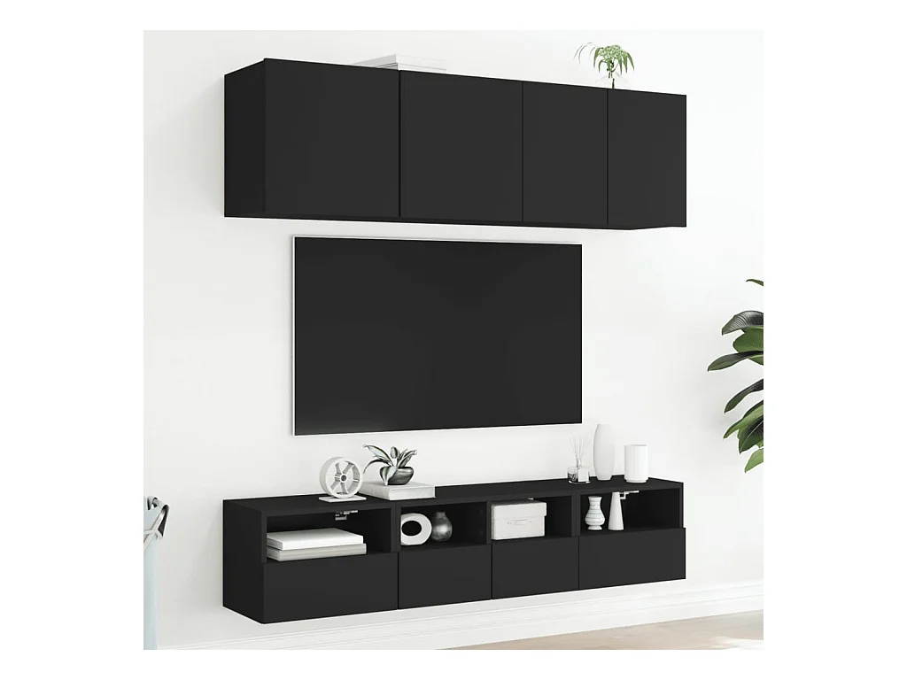 Set de muebles para TV | Gabinetes de TV | Muebles de salón 4 piezas madera contrachapada negro
