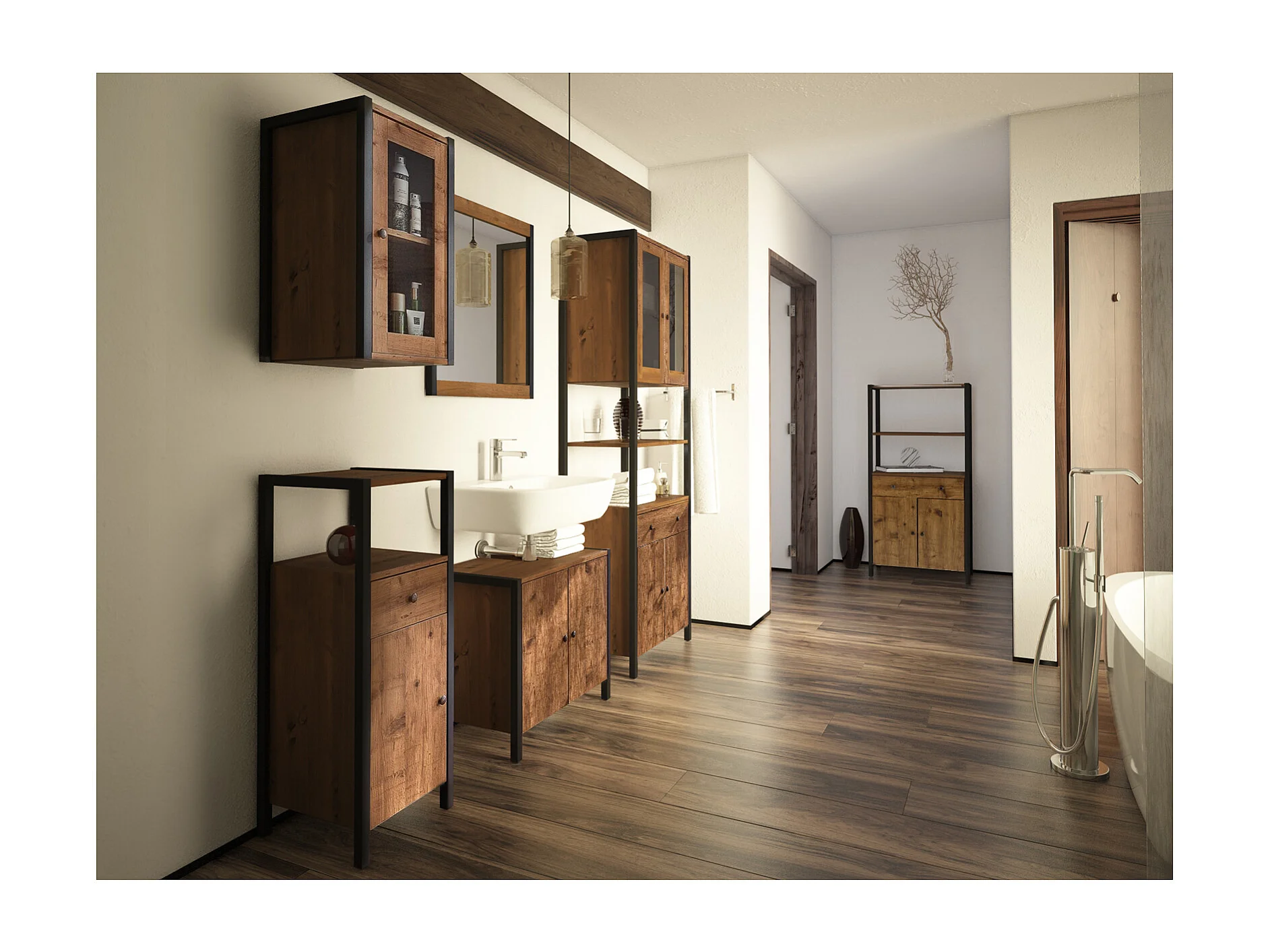 Mueble de pared+Puerta de vidrio en tablero aglomerado roble parcífico