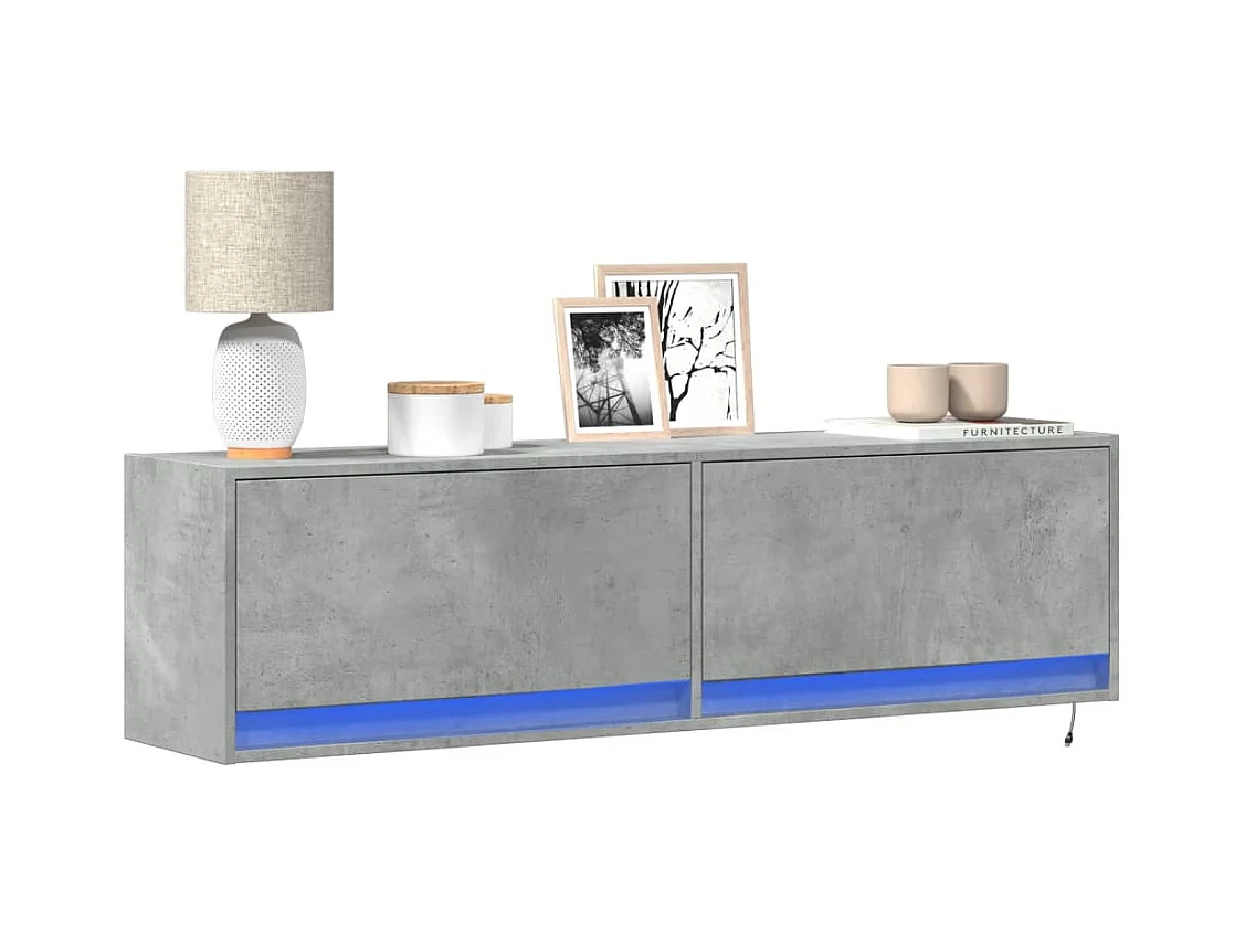 Mueble de TV | Mueble de salón de pared luces LED gris hormigón 135x31x39,5 cm