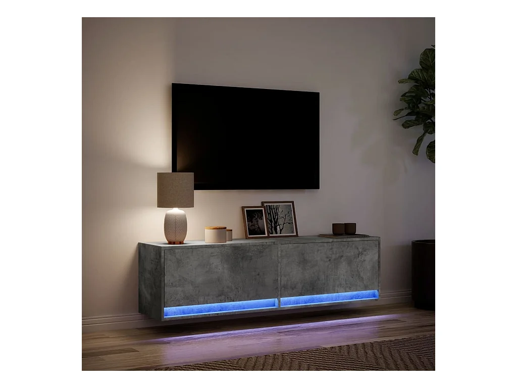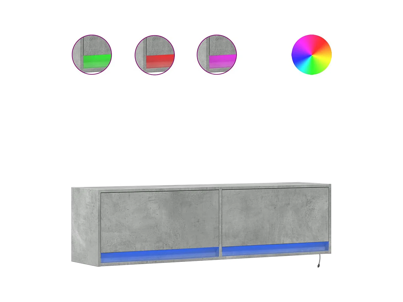 Mueble de pared TV | Gabinete de TV | Mueble de salón con luces LED gris hormigón 140x31x38 cm