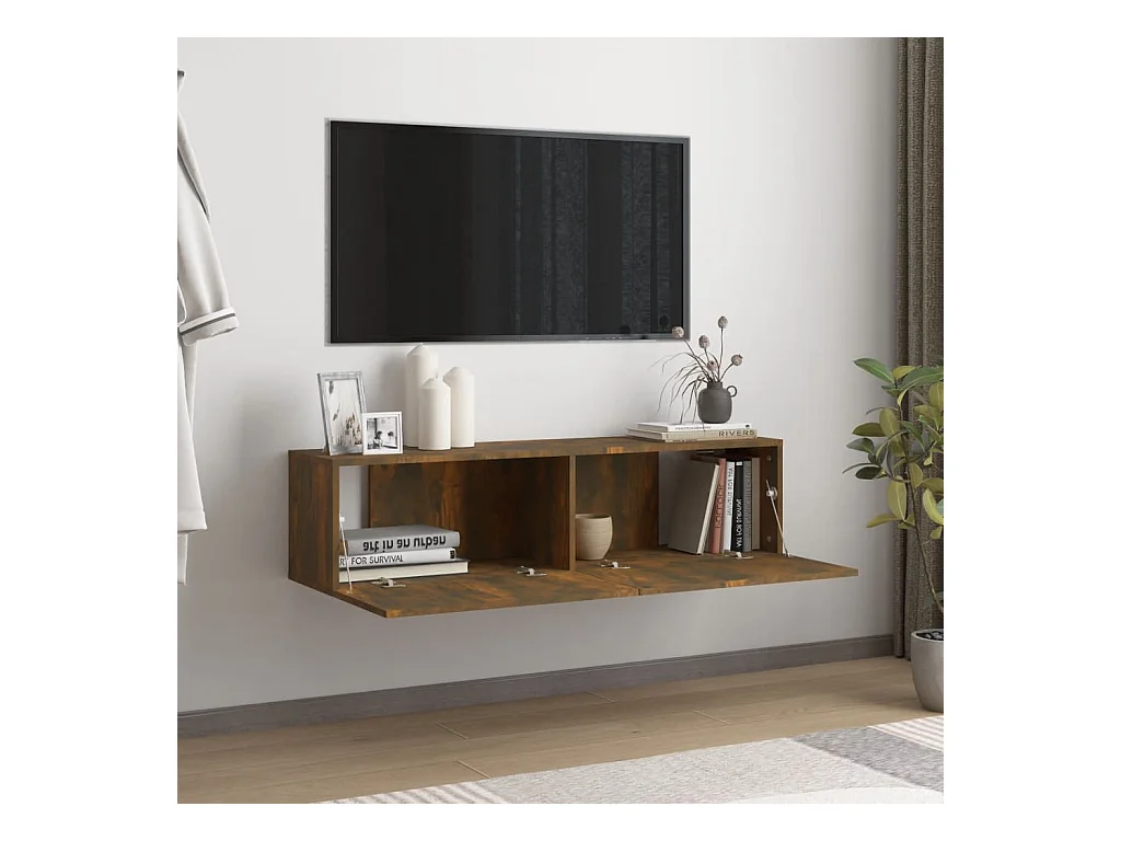 Mueble de pared TV | Gabinete de TV | Mueble de salón contrachapado roble ahumado 120x30x30 cm