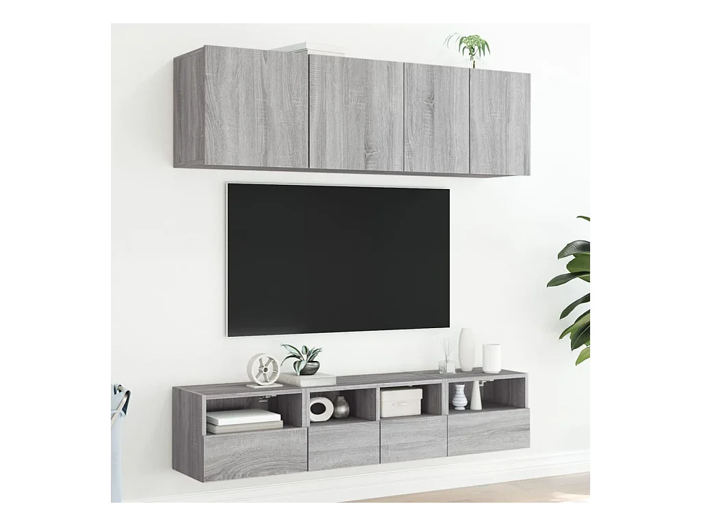 Muebles de TV | Gabinetes de TV | Muebles de salón de pared con luces LED 4 piezas gris Sonoma