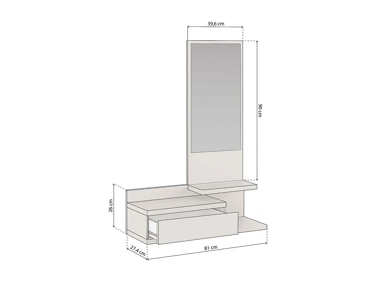 Mueble recibidor con 1 cajón y espejo en blanco mate y gris cemento 75 cm Milo Blanco Artik (Blanco Mate) - Gris Cemento