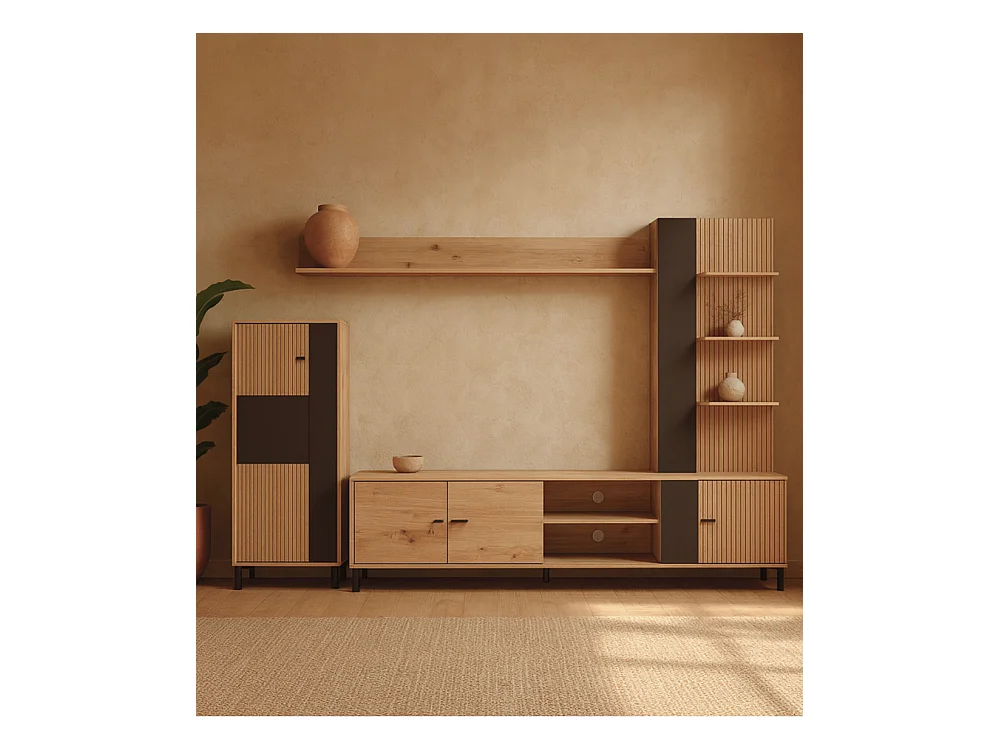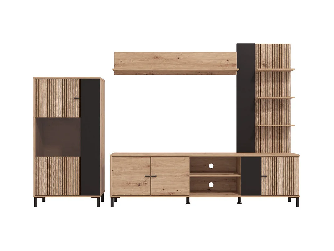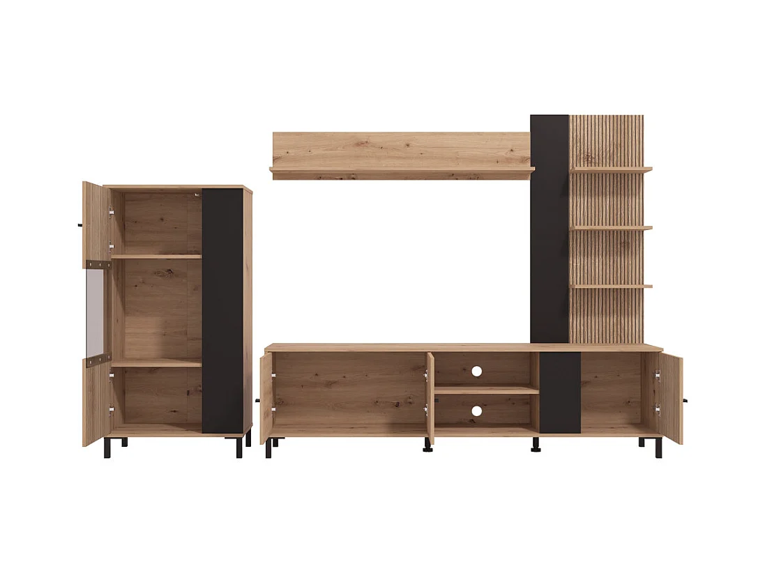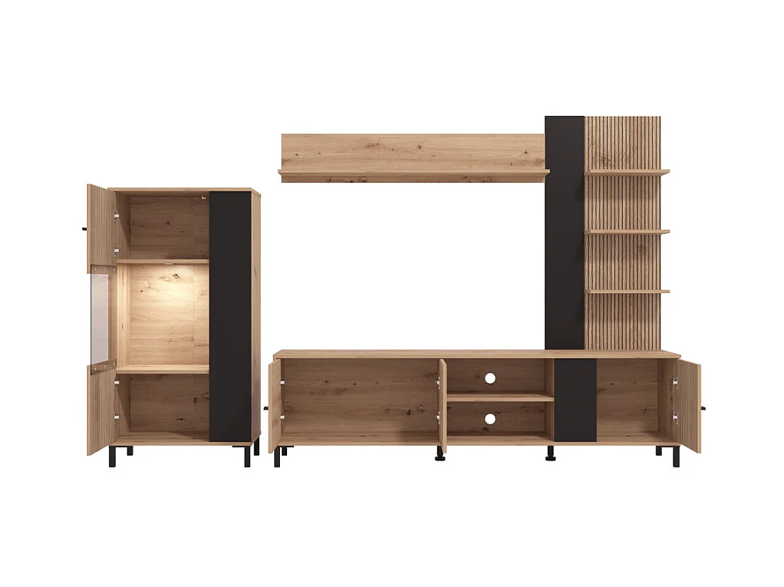 Mueble de salón de 167x263x40 cm en tablero de melamina aglomerado en roble y negro Avion