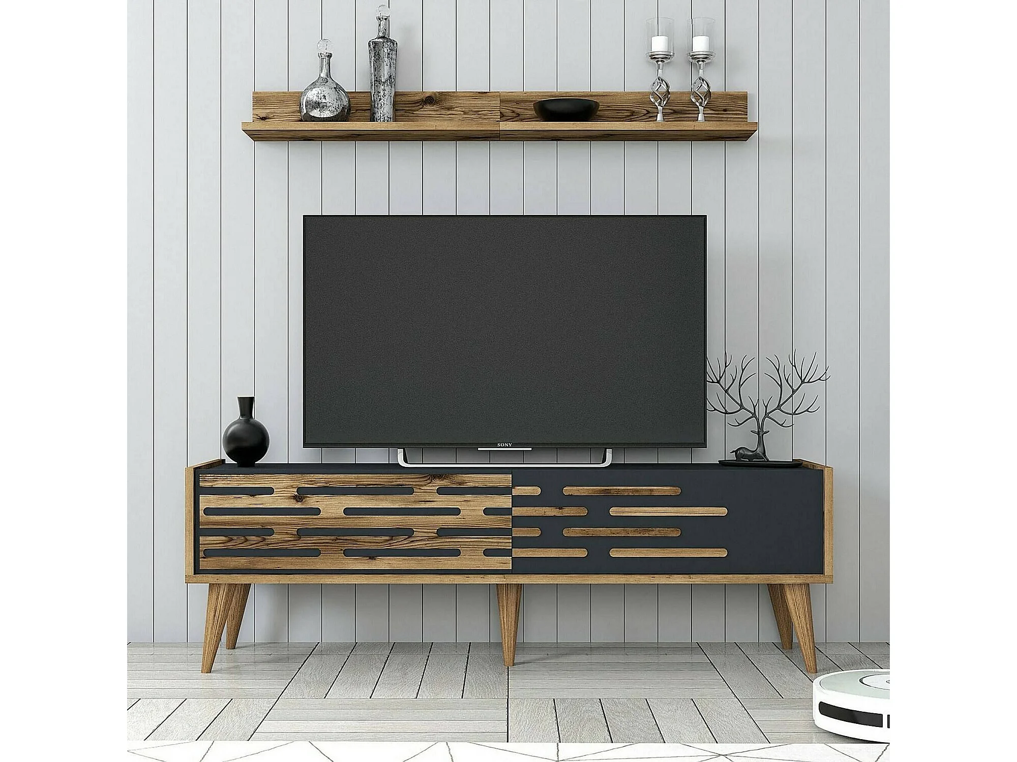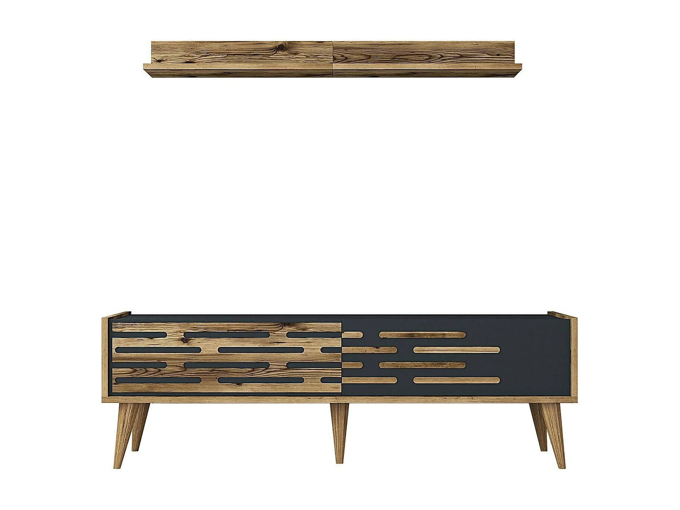 Mueble de televisión Daanesta, Aparador de salón, Mueble bajo para TV, Base de pared equipada, 140x45h35 cm, Nogal y Antracita