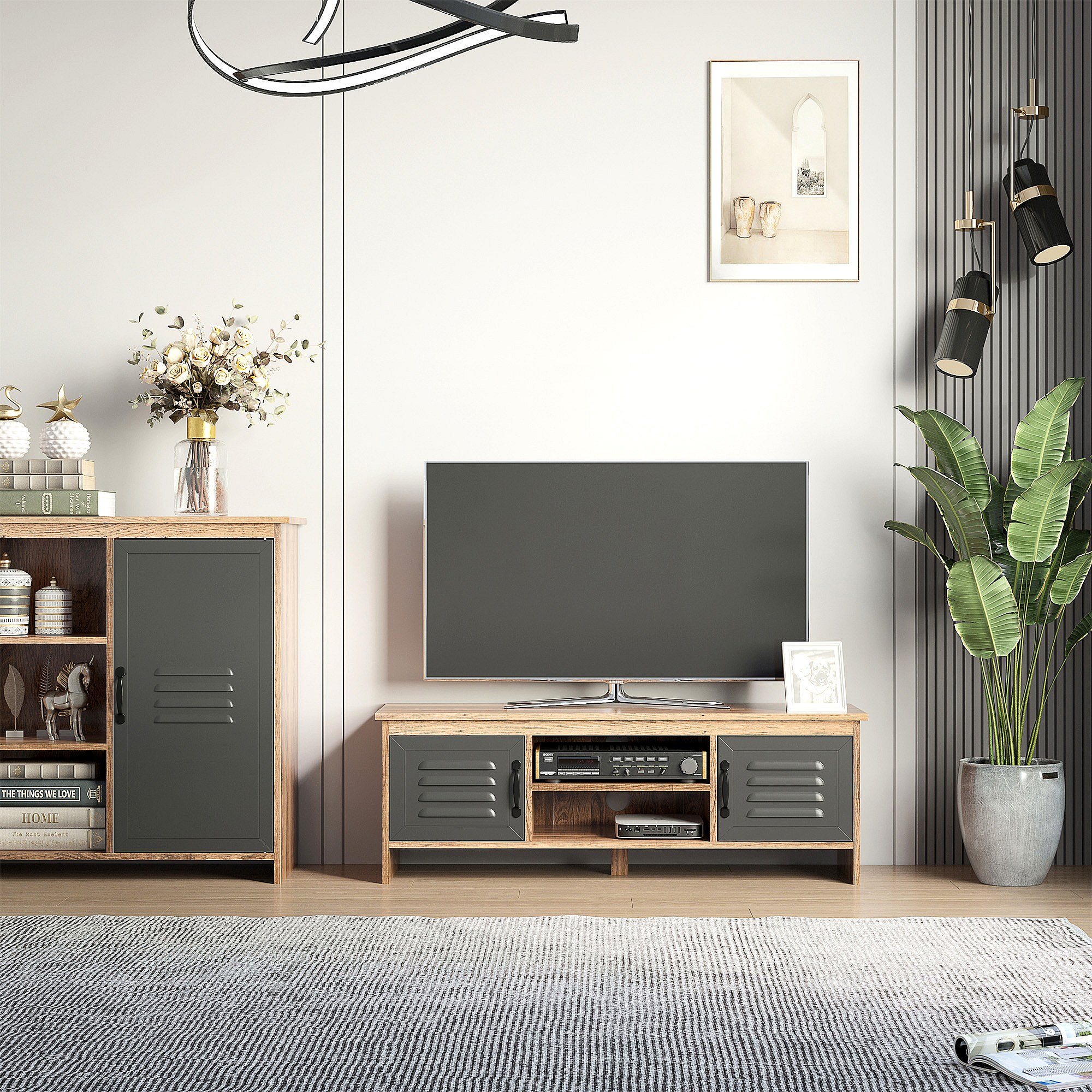 • Mueble para TV con estructura de melamina de madera, resistente y fácil de limpiar