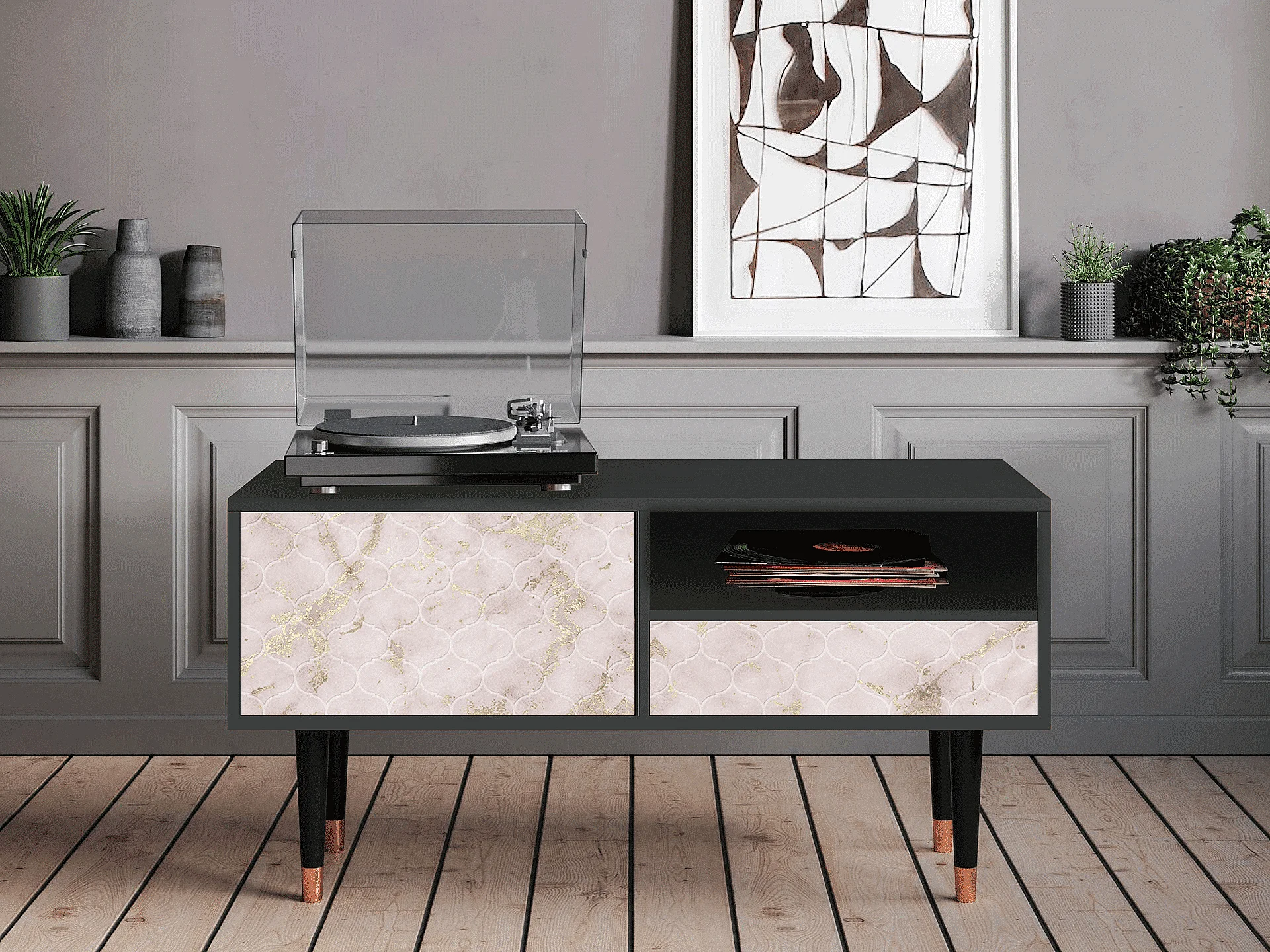 Mueble de TV - 115х59х48 cm - T3 - Dirty Roses, Antracita