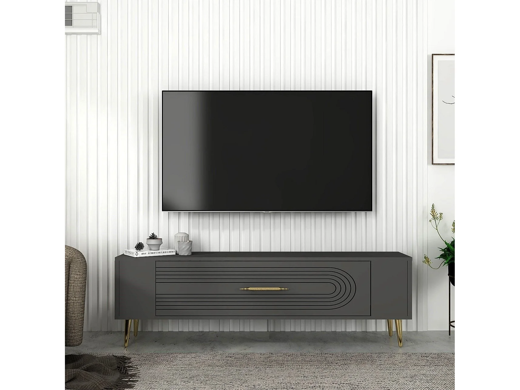 Mueble de TV – 120 cm x 48,2 cm x 26,4 cm – Antracita y Oro – Tablero de partículas