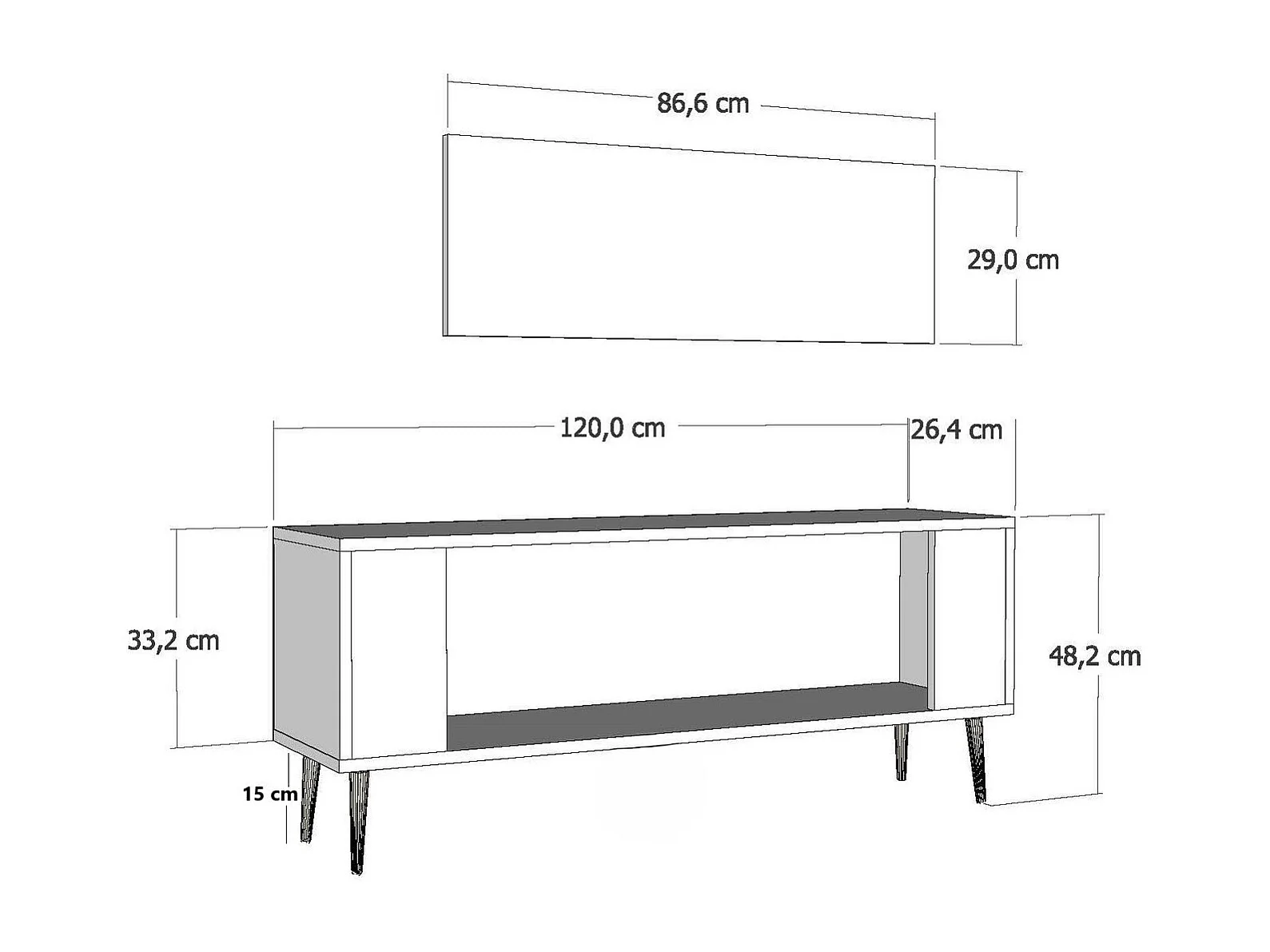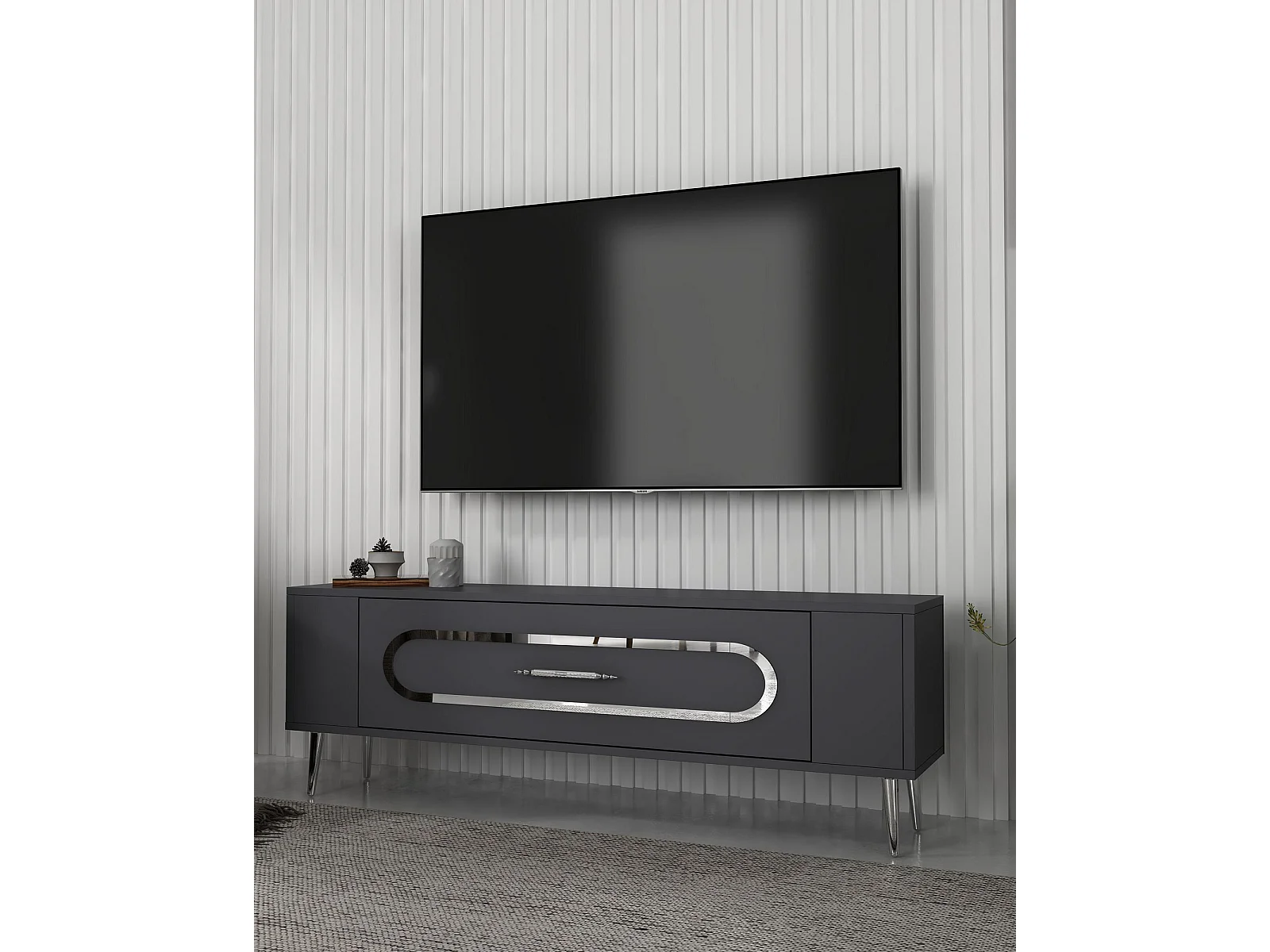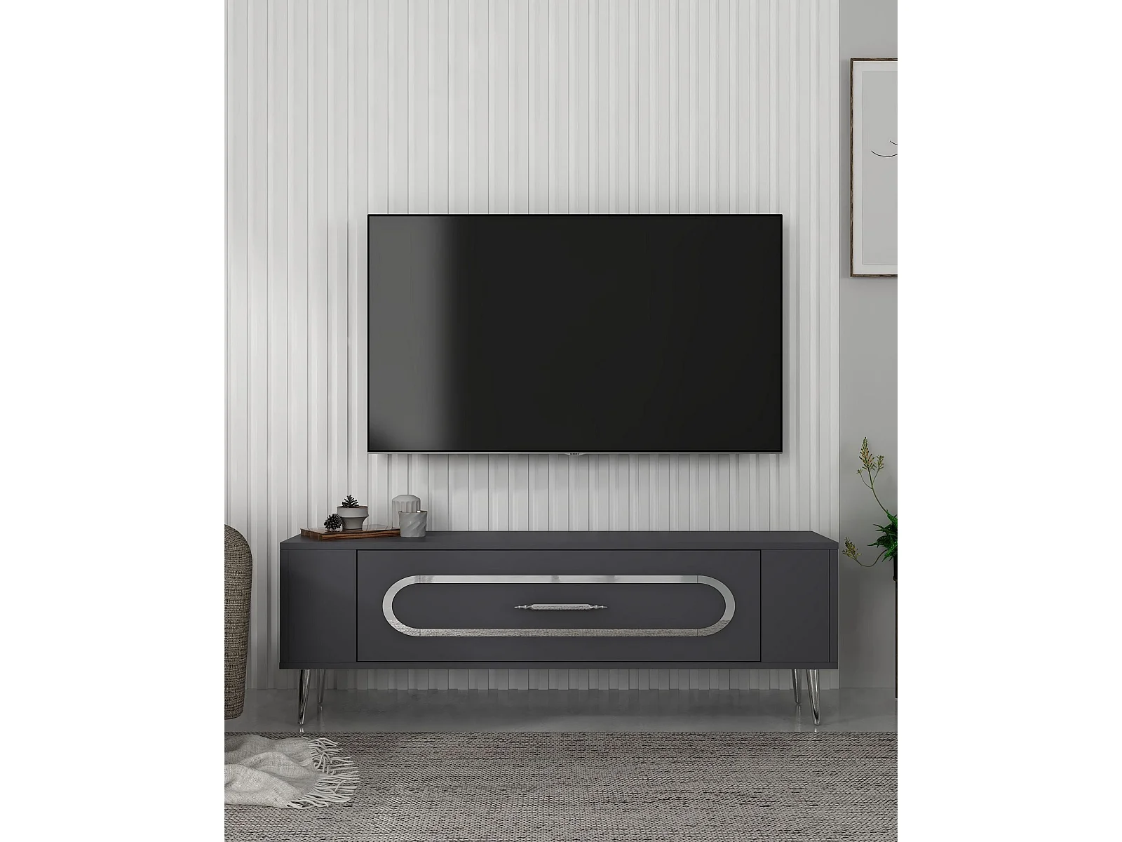 Mueble de TV – 120 cm x 48,2 cm x 26,4 cm – Antracita y Plata – Tablero de partículas recubierto de melamina