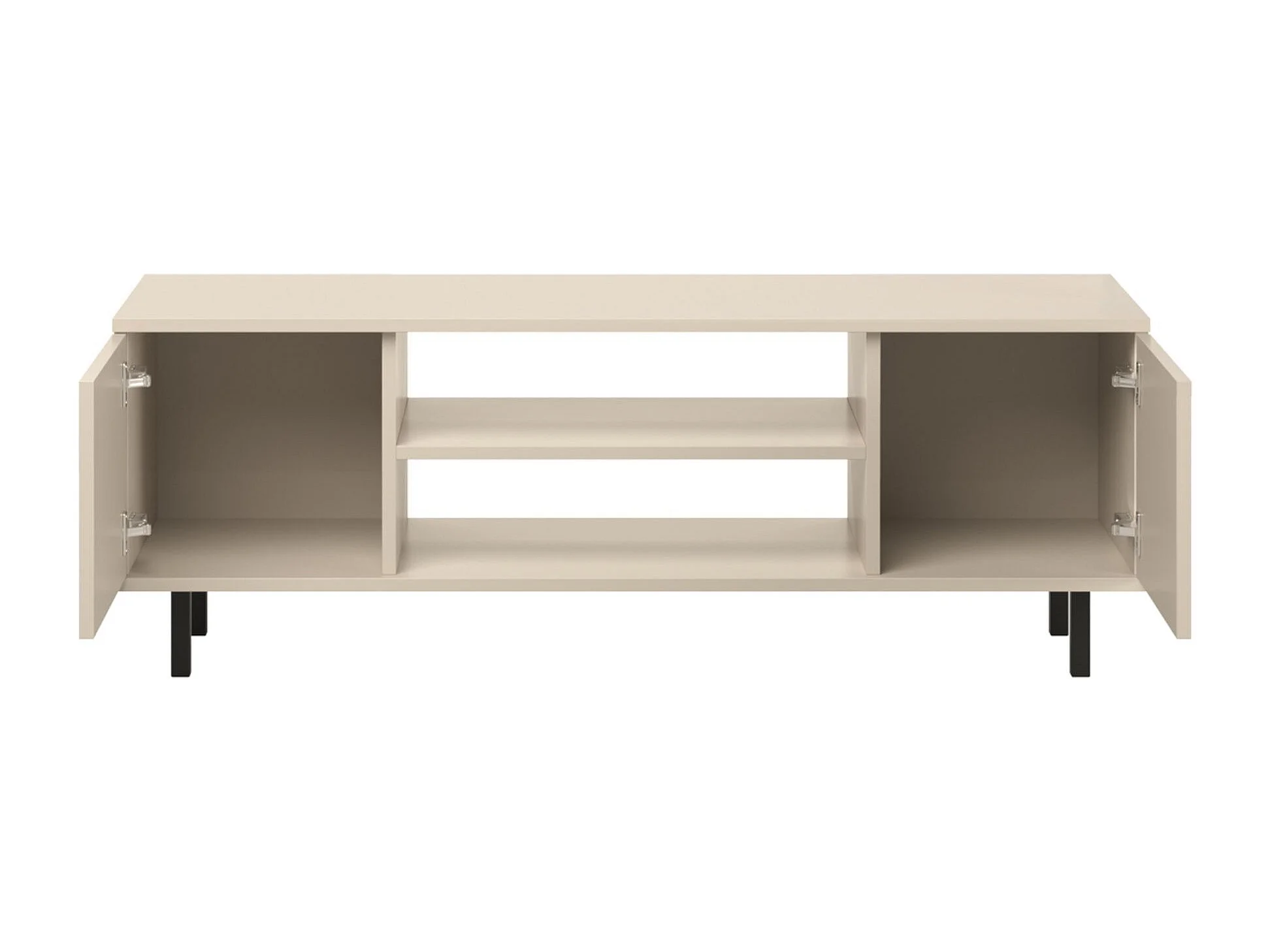 Mueble de TV 135 cm Color Cachemir– Estilo Escandinavo con Estante Central, Armarios con Cerradura y Patas Negras, 135x40x48 Cm