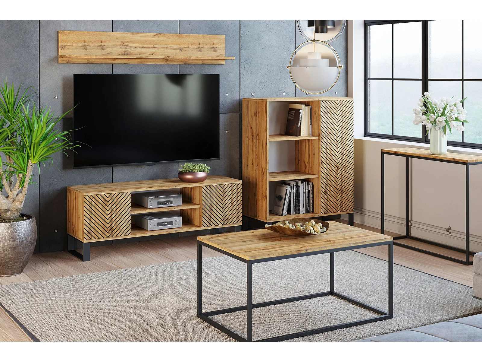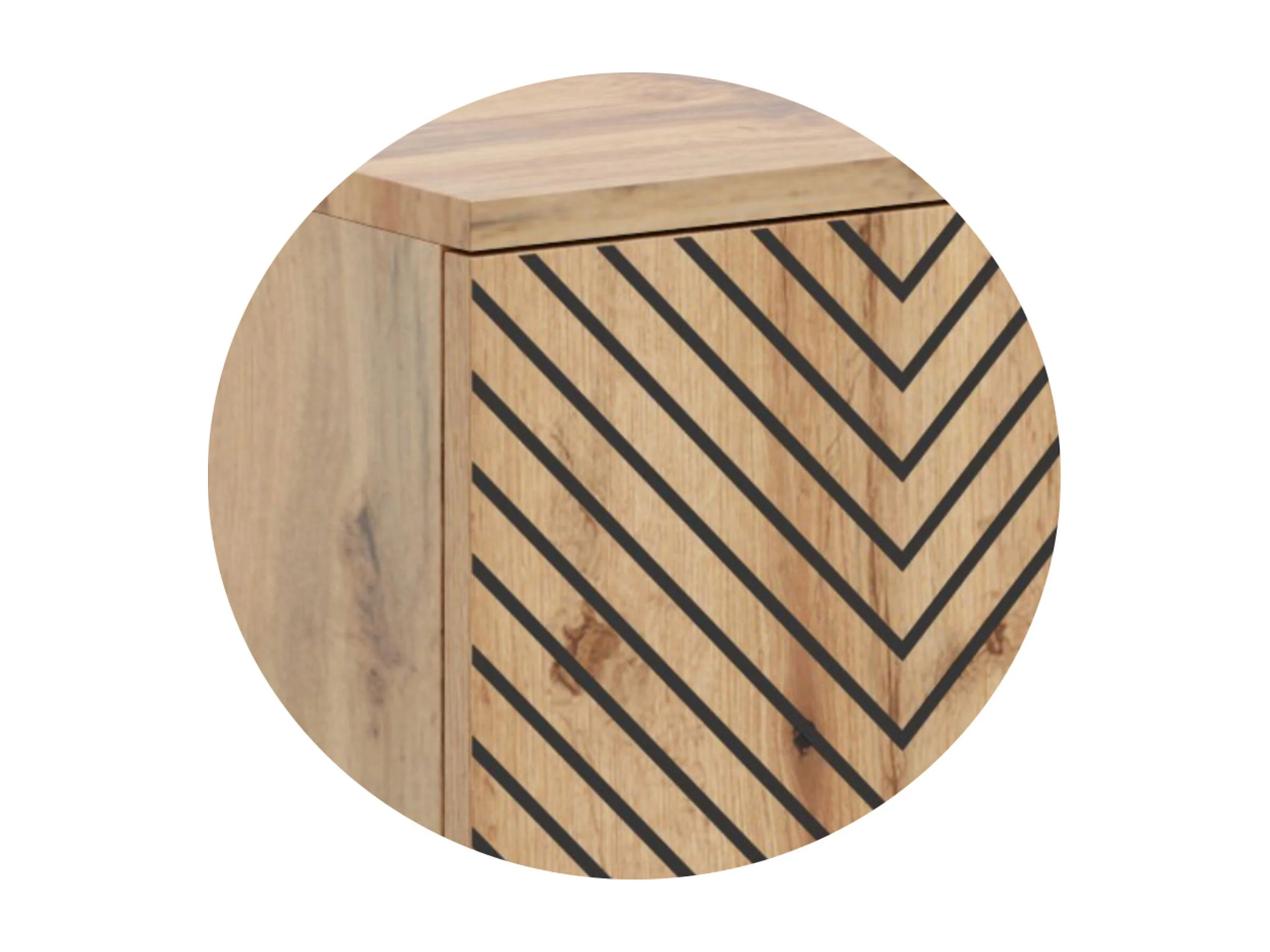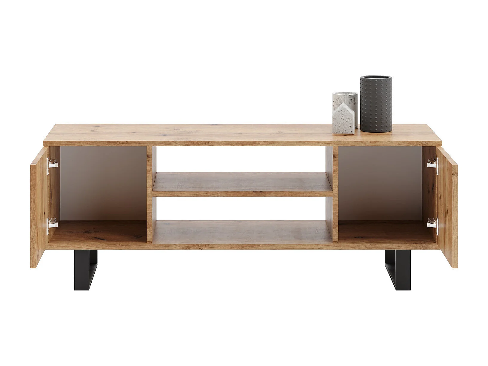 Mueble de TV 135 cm Color Roble artesanal Geometrico– Estilo Escandinavo con Estante Central, Armarios con Cerradura y Patas Metálicas, 135x40x49 Cm