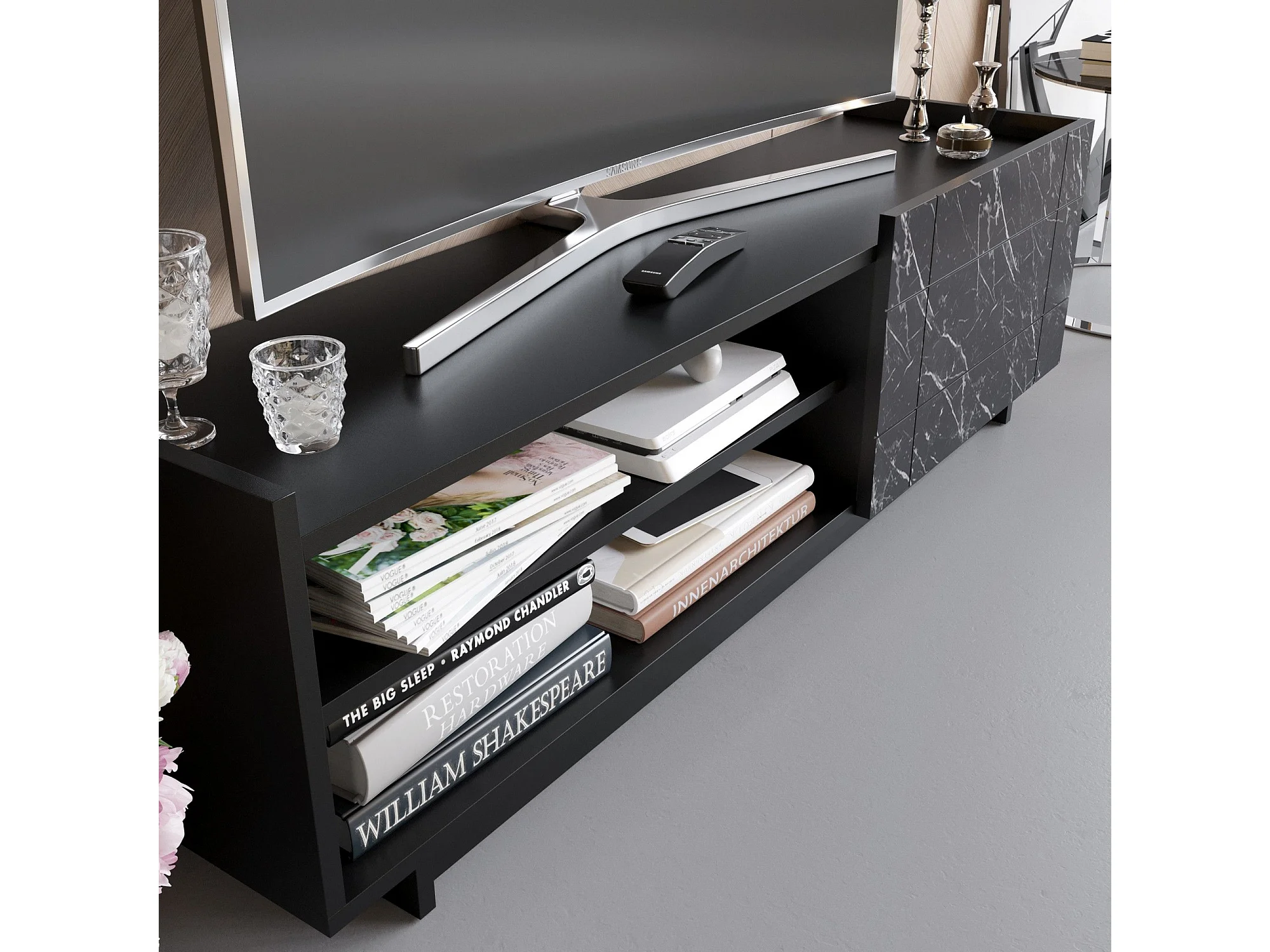 Mueble de TV – 140 cm – Negro y mármol – Tablero de partículas