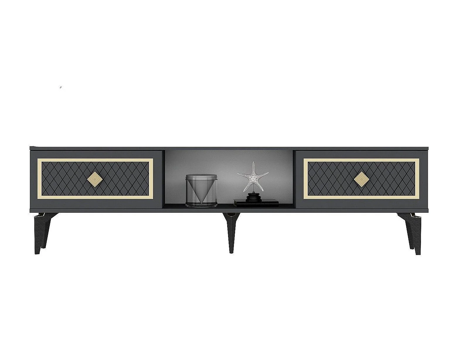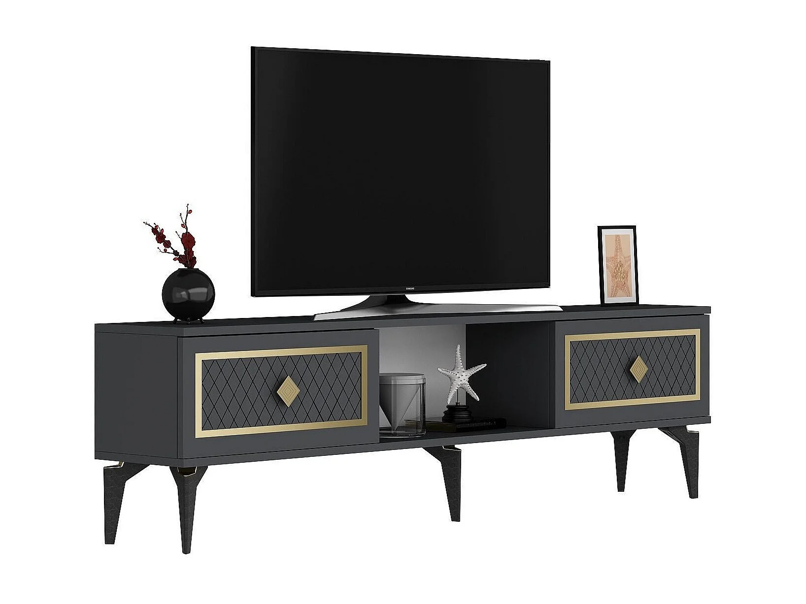 Mueble de TV – 150 cm x 44,6 cm x 29,6 cm – Antracita y Oro – Tablero de Partículas Revestido de Melamina