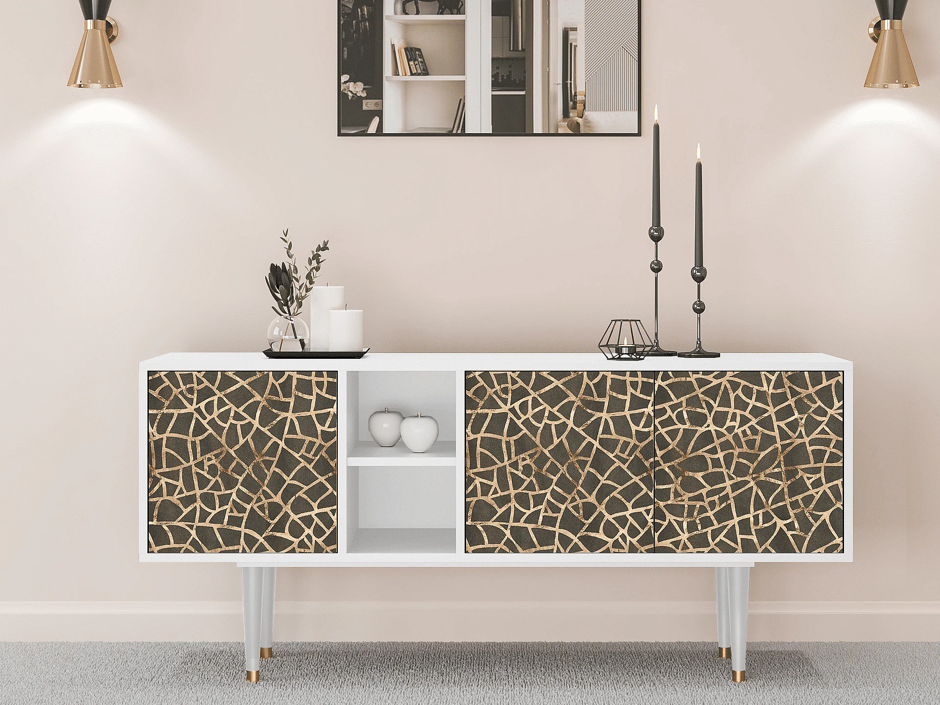 Mueble de TV - 150х69х41 cm - T5 - Enlarged Leaf, Blanco