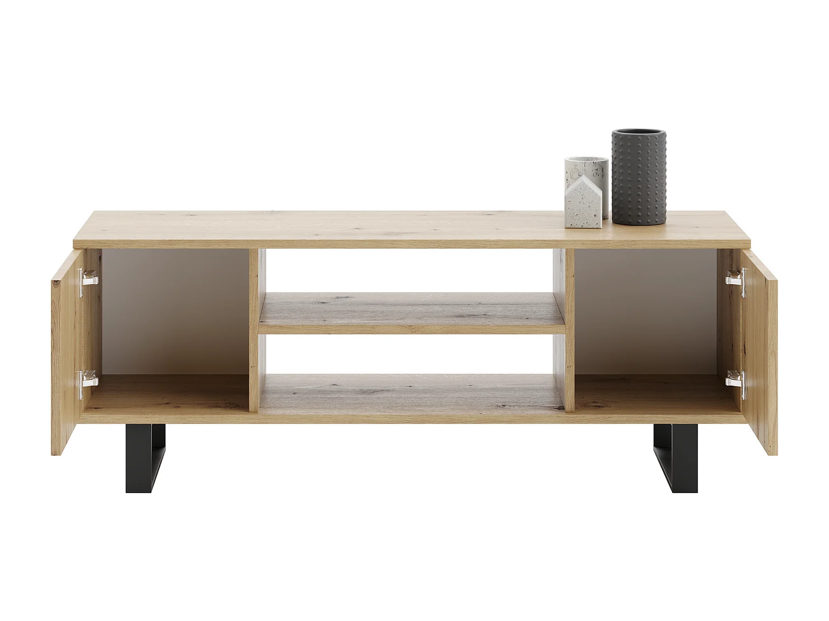 Mueble de TV 155 cm Roble Artisan – Estilo Escandinavo con Estante Central, Armarios con Cerradura y Patas de Metálicas, 135x50x40 cm