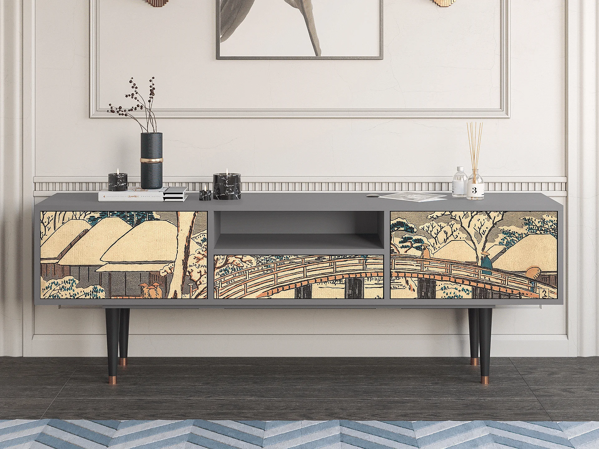 Mueble de TV - 170х59х41 cm - T6 - Katabira River, Gris