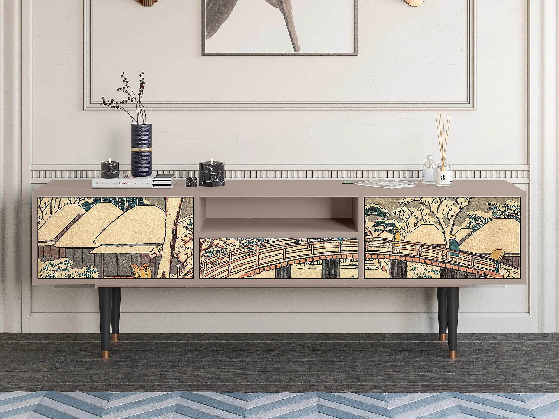 Mueble de TV - 170х59х41 cm - T6 - Katabira River, Latte