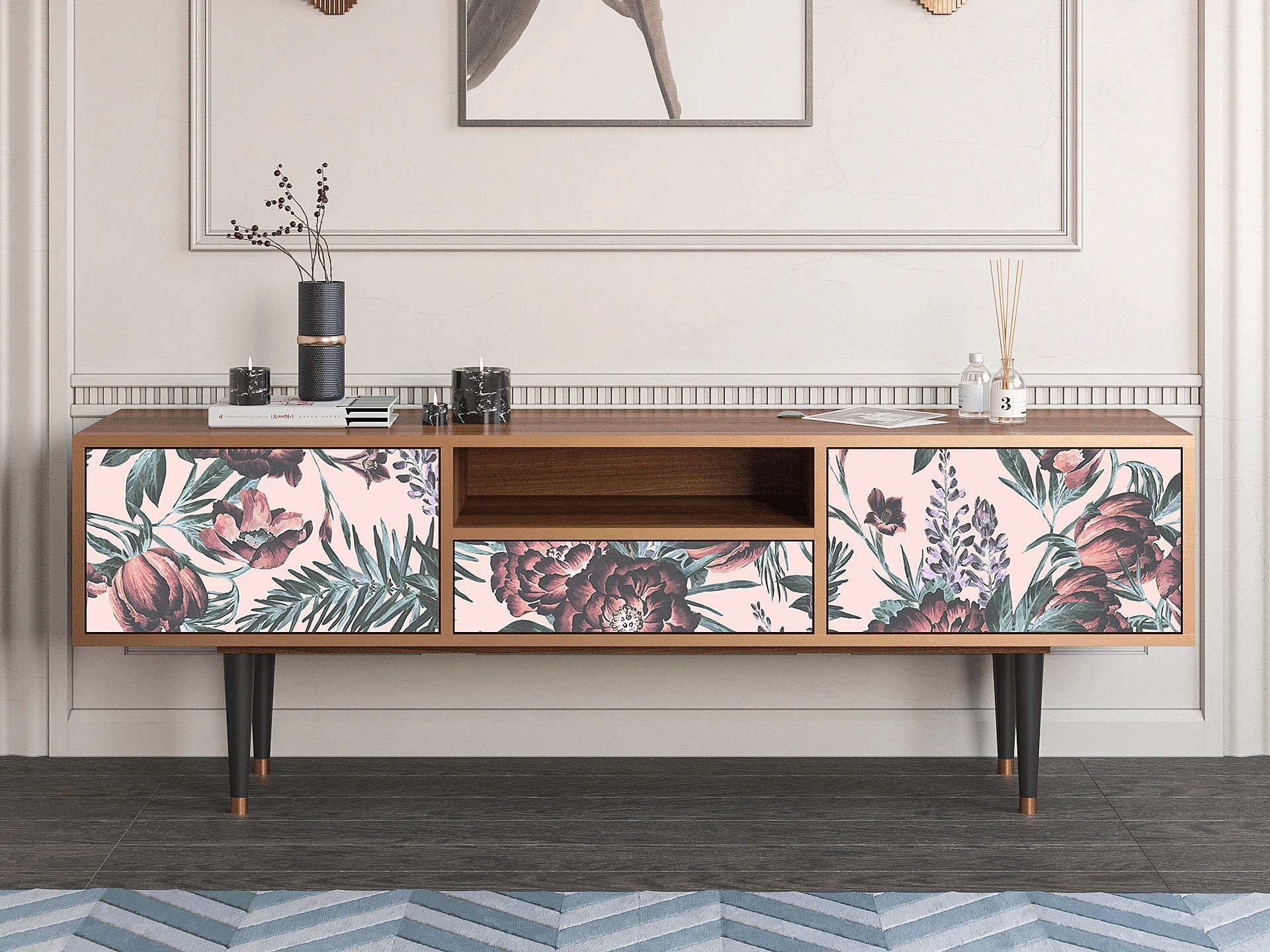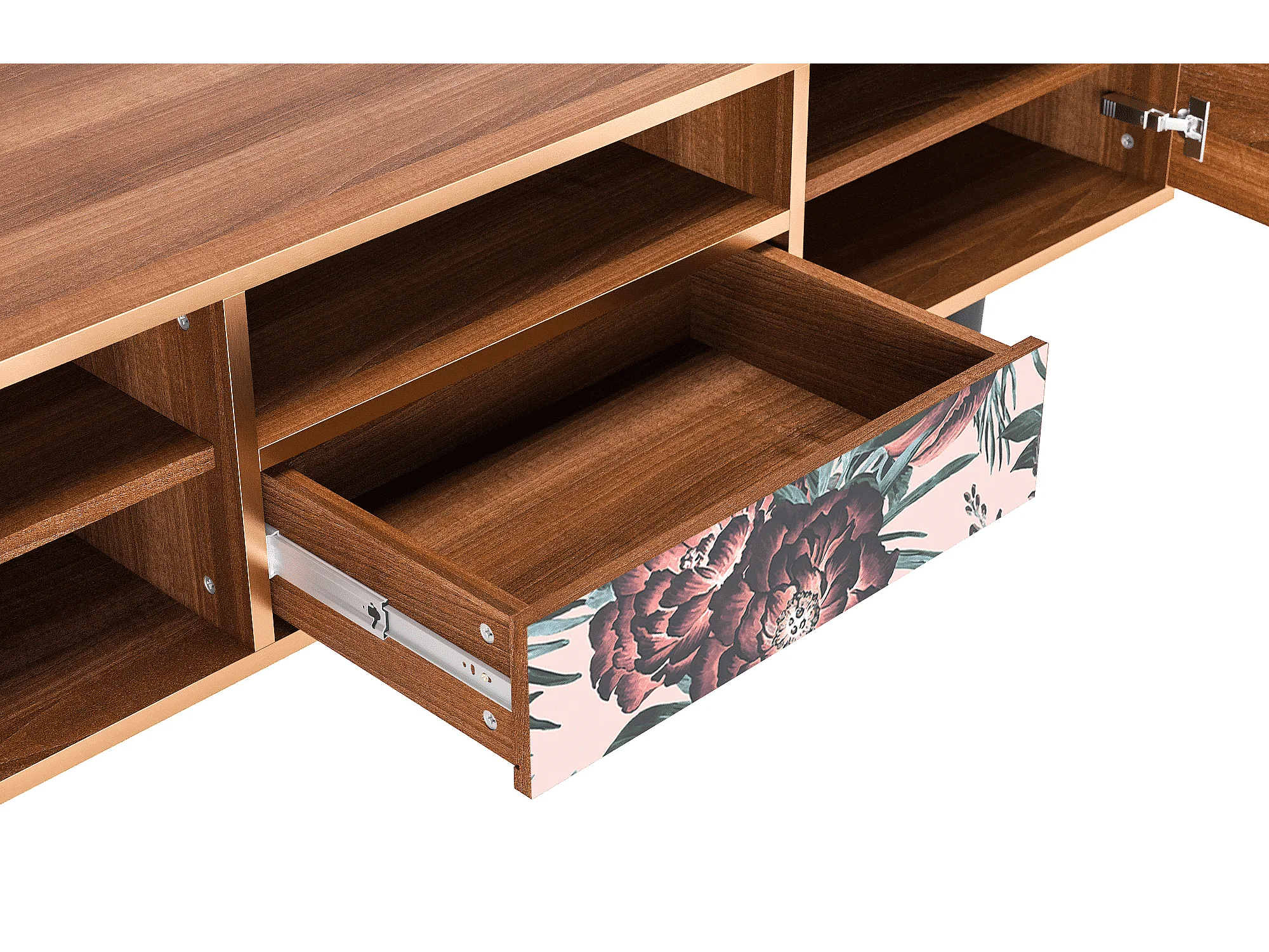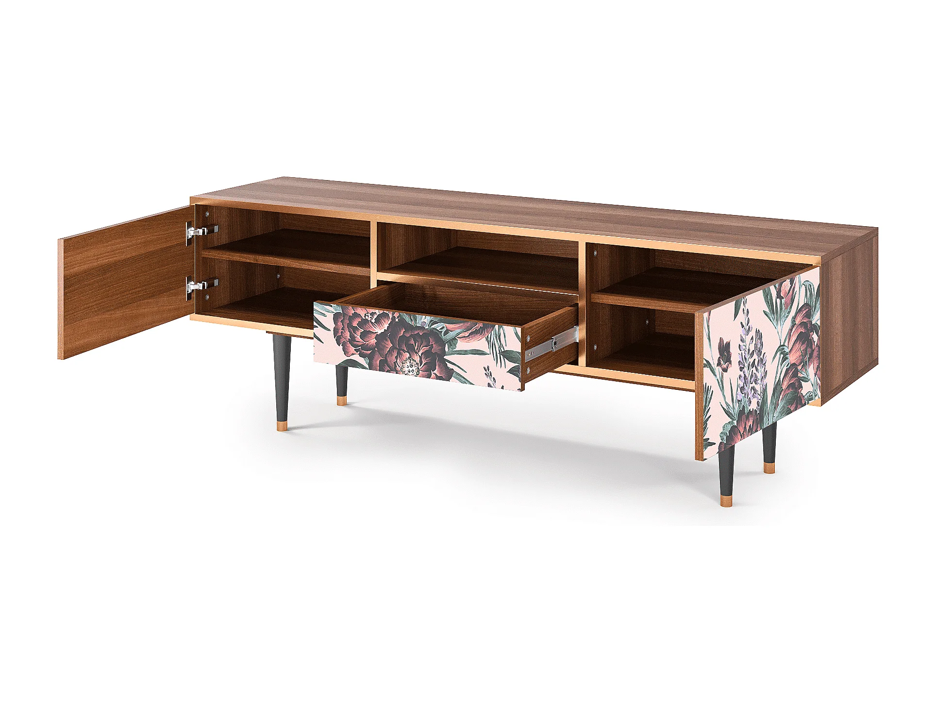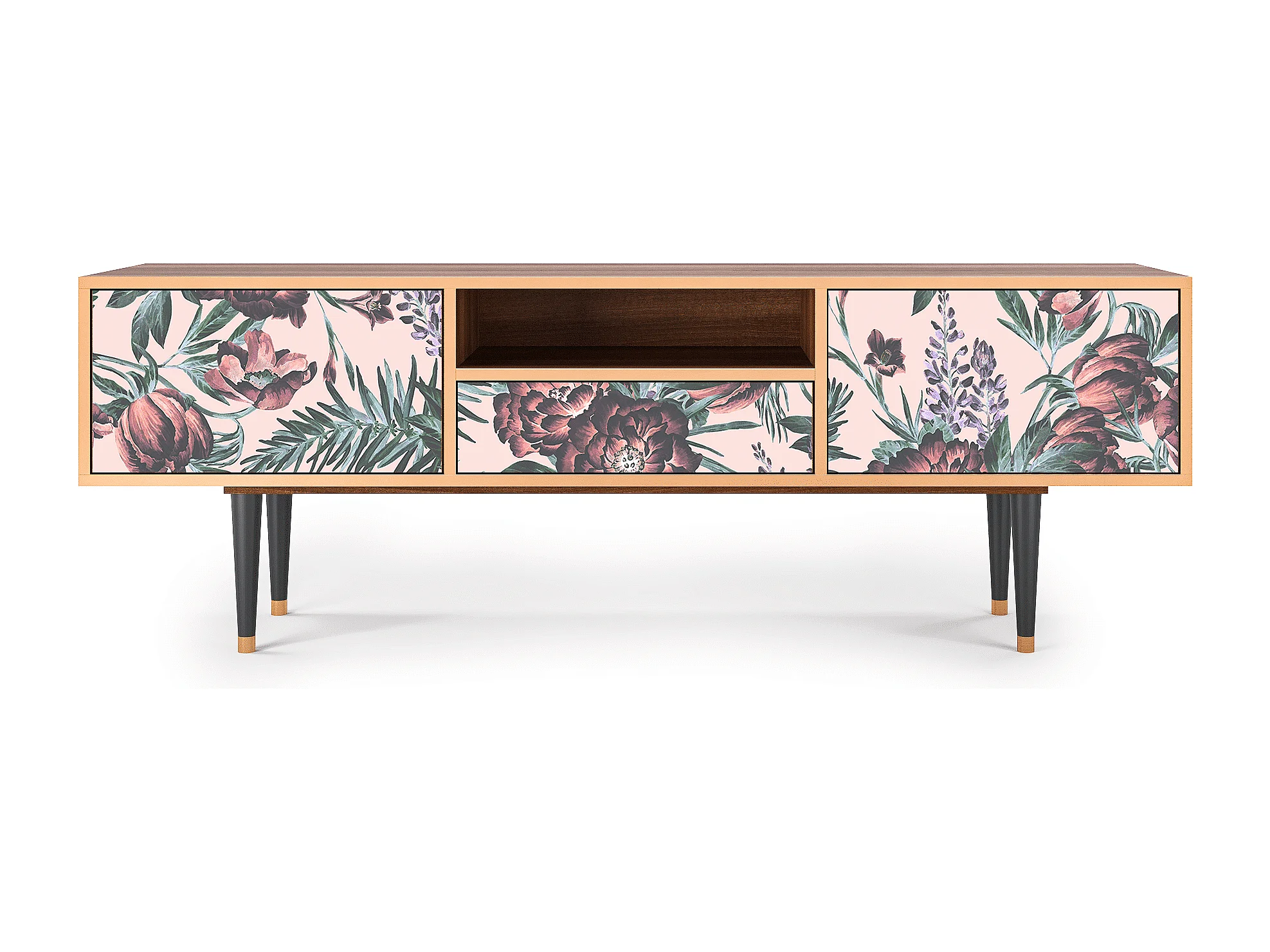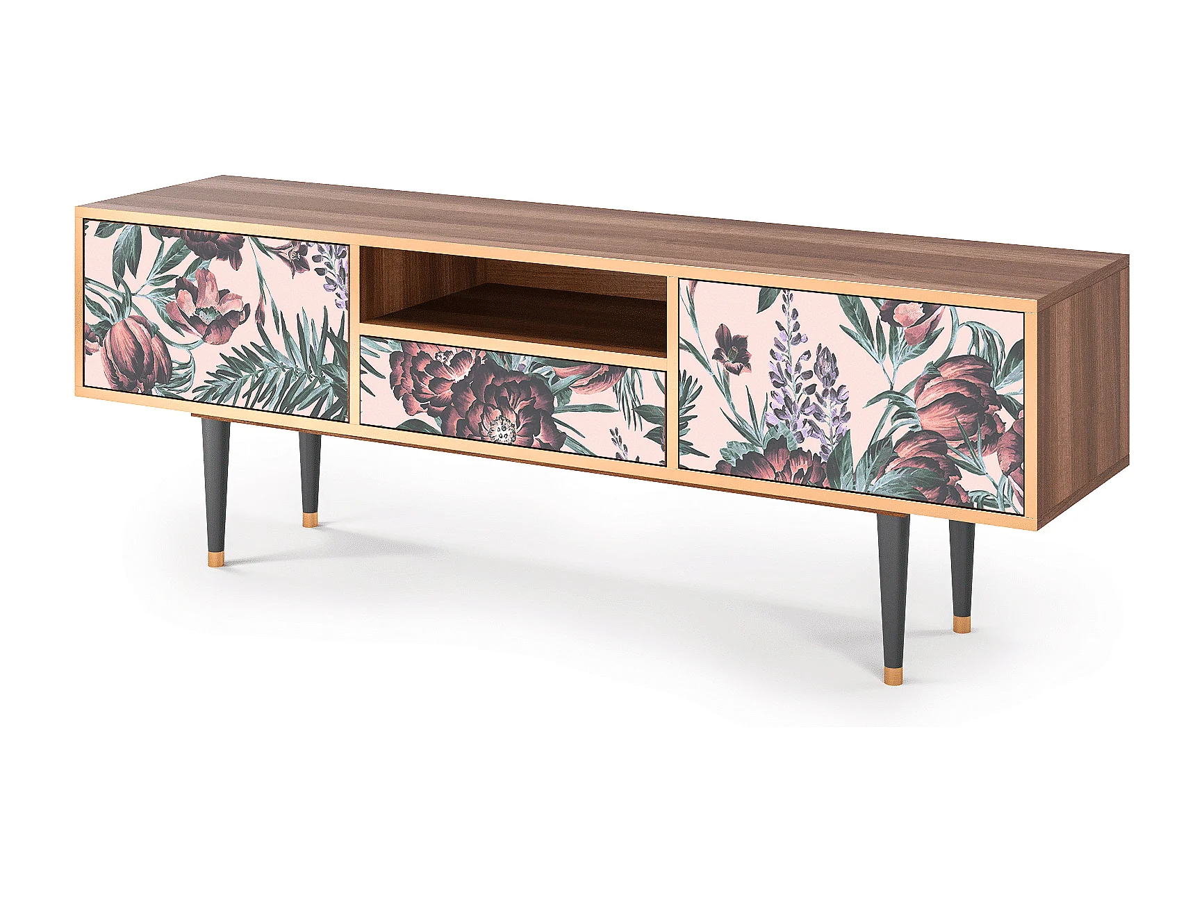 Mueble de TV - 170х59х41 cm - T6 - Peach Peonies, Nogal