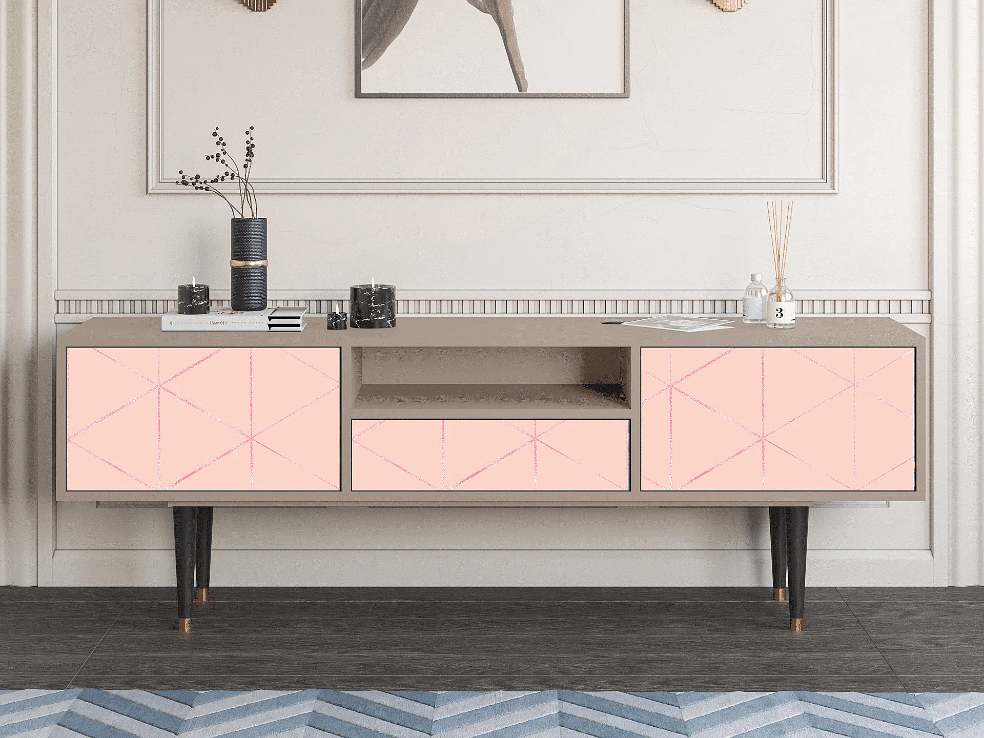 Mueble de TV - 170х59х41 cm - T6 - Rose Quartz, Latte