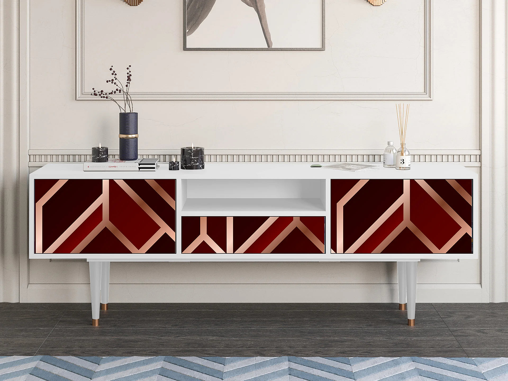 Mueble de TV - 170х59х41 cm - T6 - Velvet 1920's, Blanco