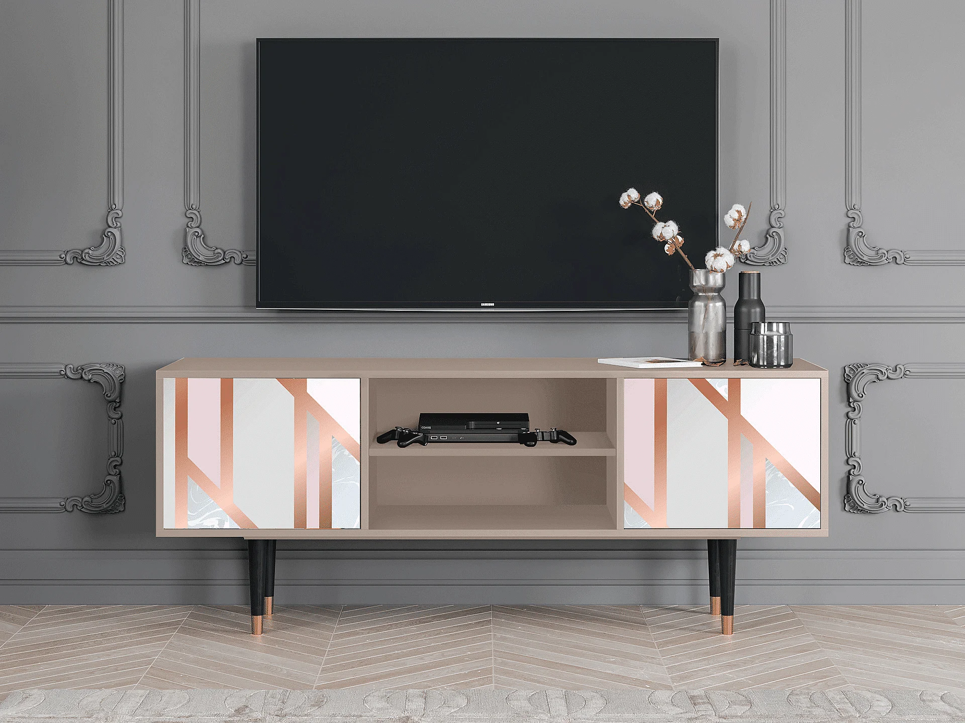 Mueble de TV - 170х69х48 cm - T2 - Champagne Story, Latte