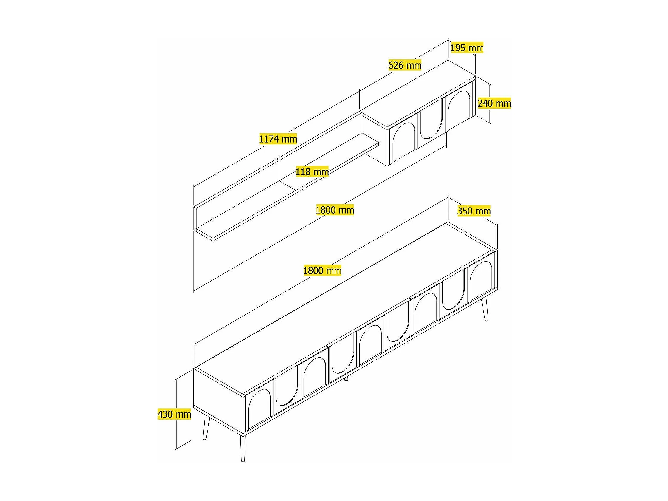 Mueble de TV – 180 cm – Atlas y Oro – Tablero de partículas recubierto de melamina