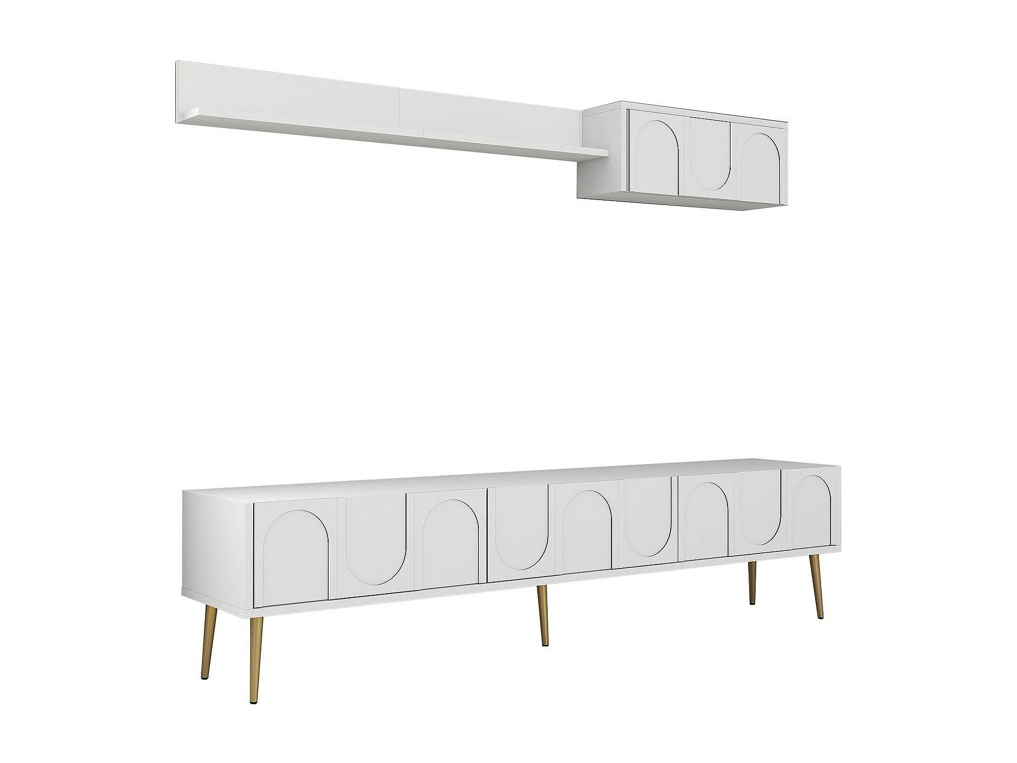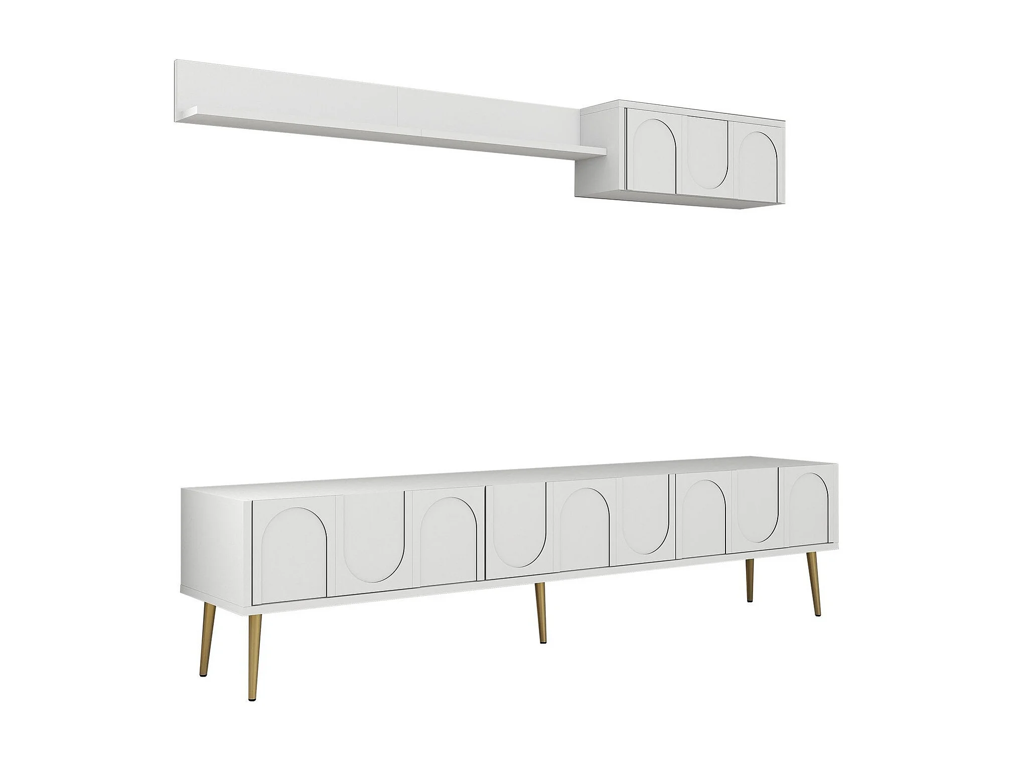 Mueble de TV – 180 cm – Blanco y Dorado – Tablero de partículas recubierto de melamina