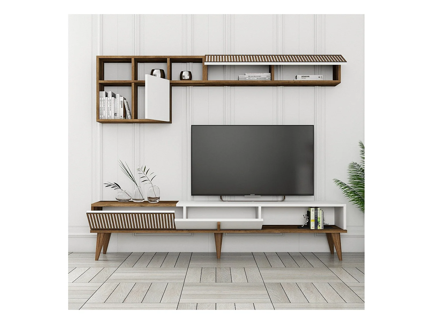 Mueble de TV – 180 cm de ancho – Nogal y Blanco – Melamina